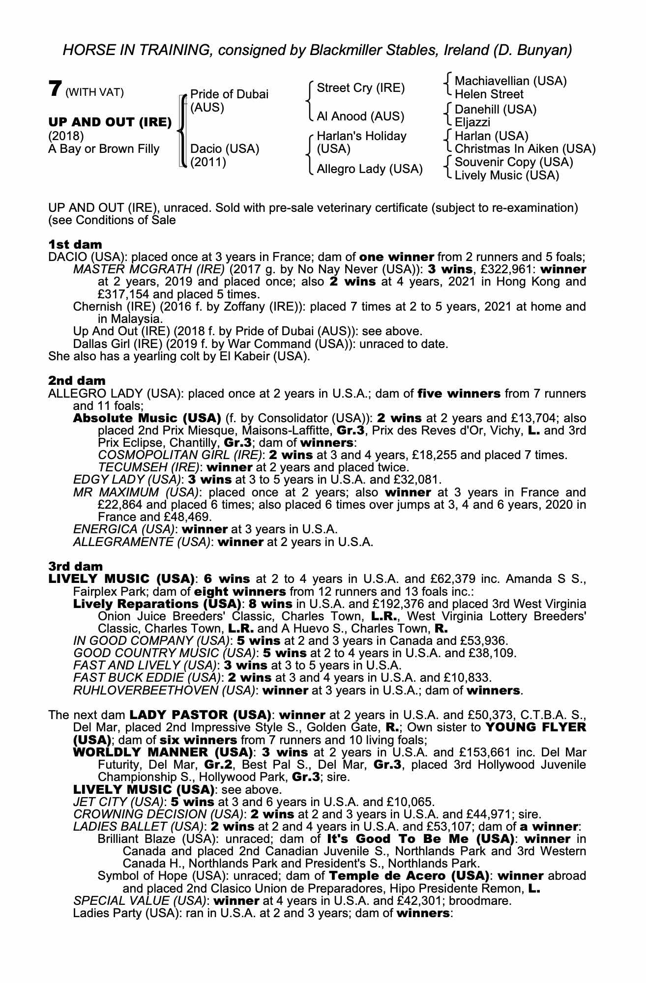 Consignor: Blackmiller Stables, Ireland (D. Bunyan)