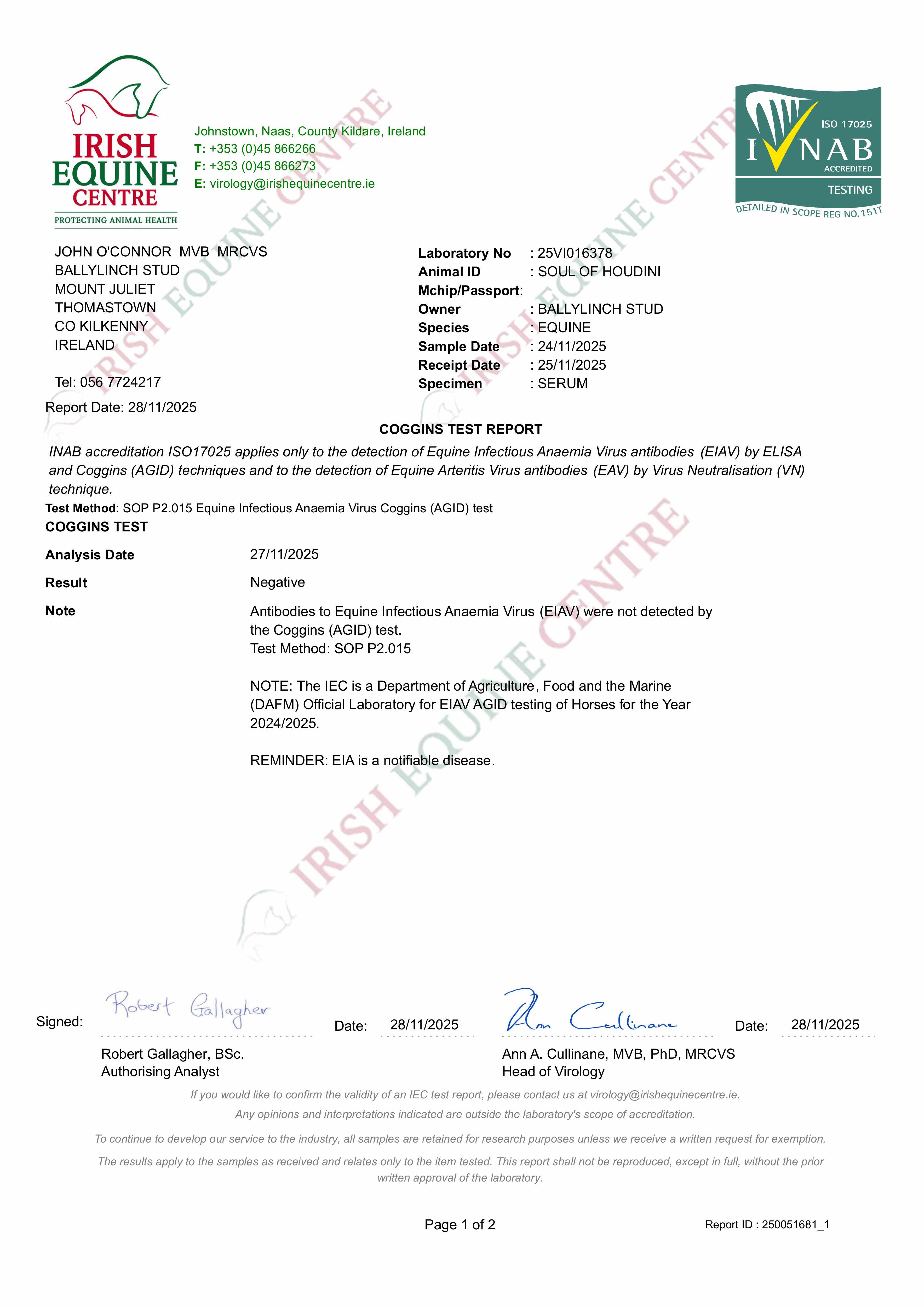 Contact: Eoin Fives ✆ +353870501888 ✉ eoin@ballylinchstud.ie