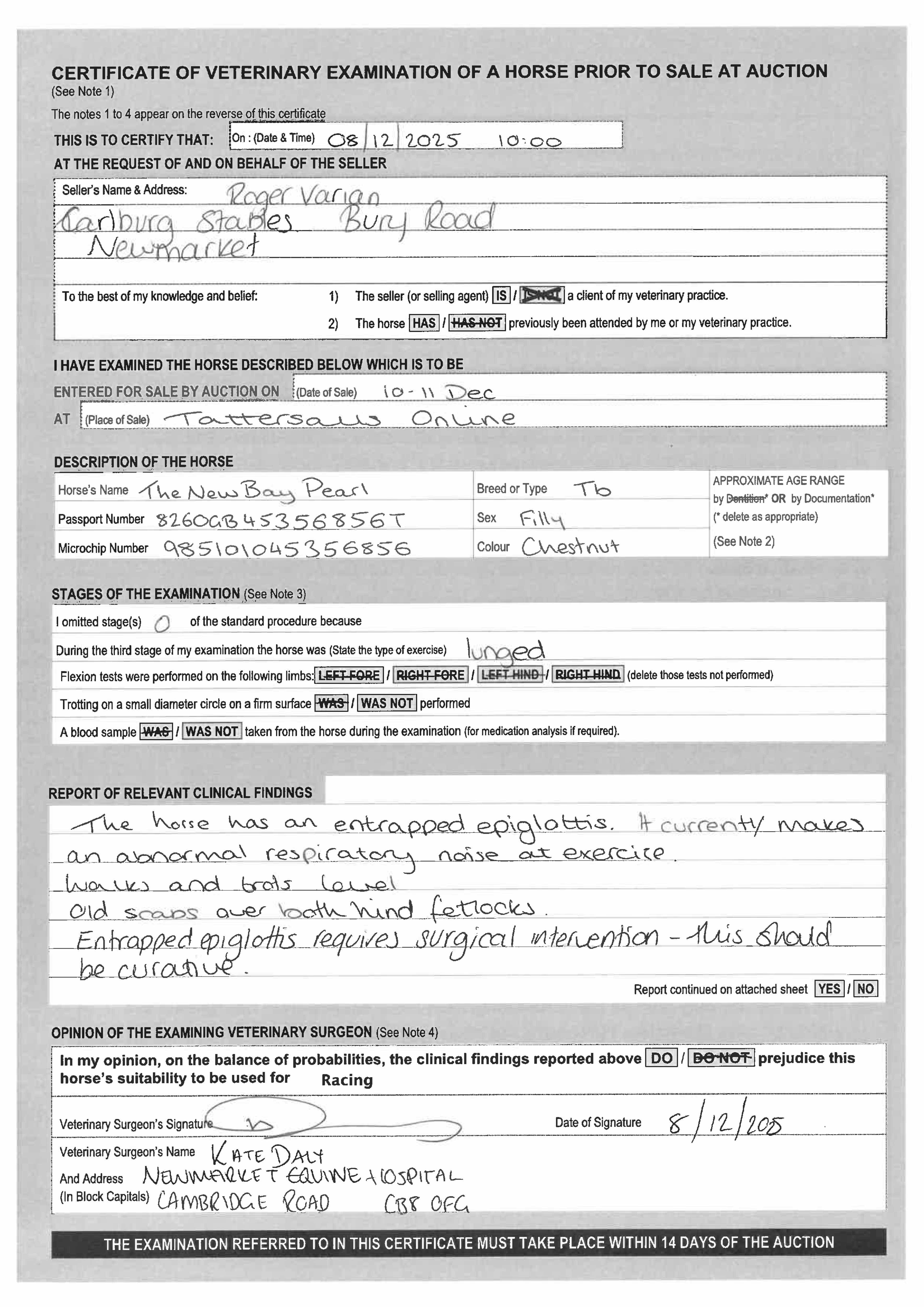 For time sensitive requests please call Tattersalls on +44(0)1638665931