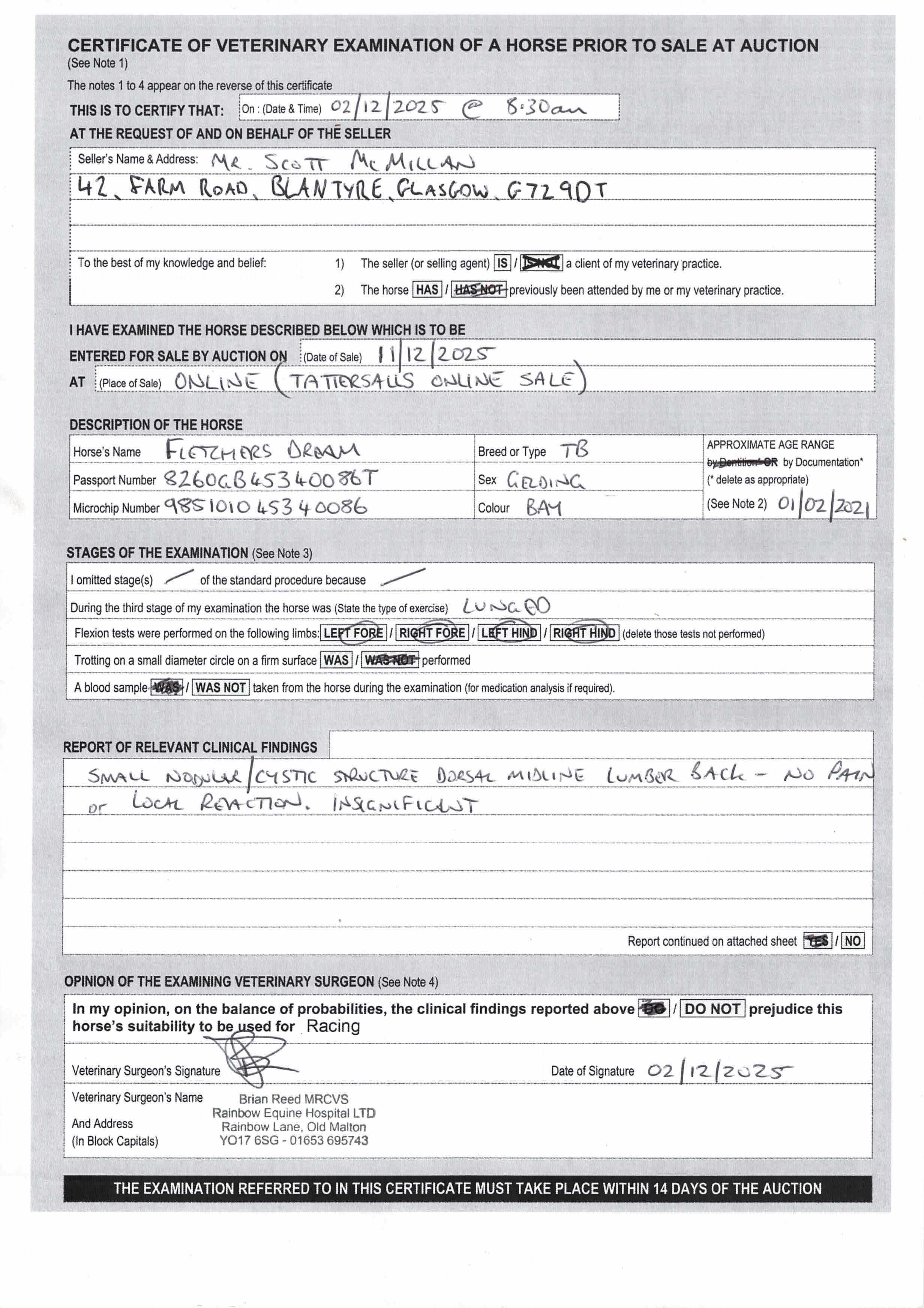 For time sensitive requests please call Tattersalls on +44(0)1638665931