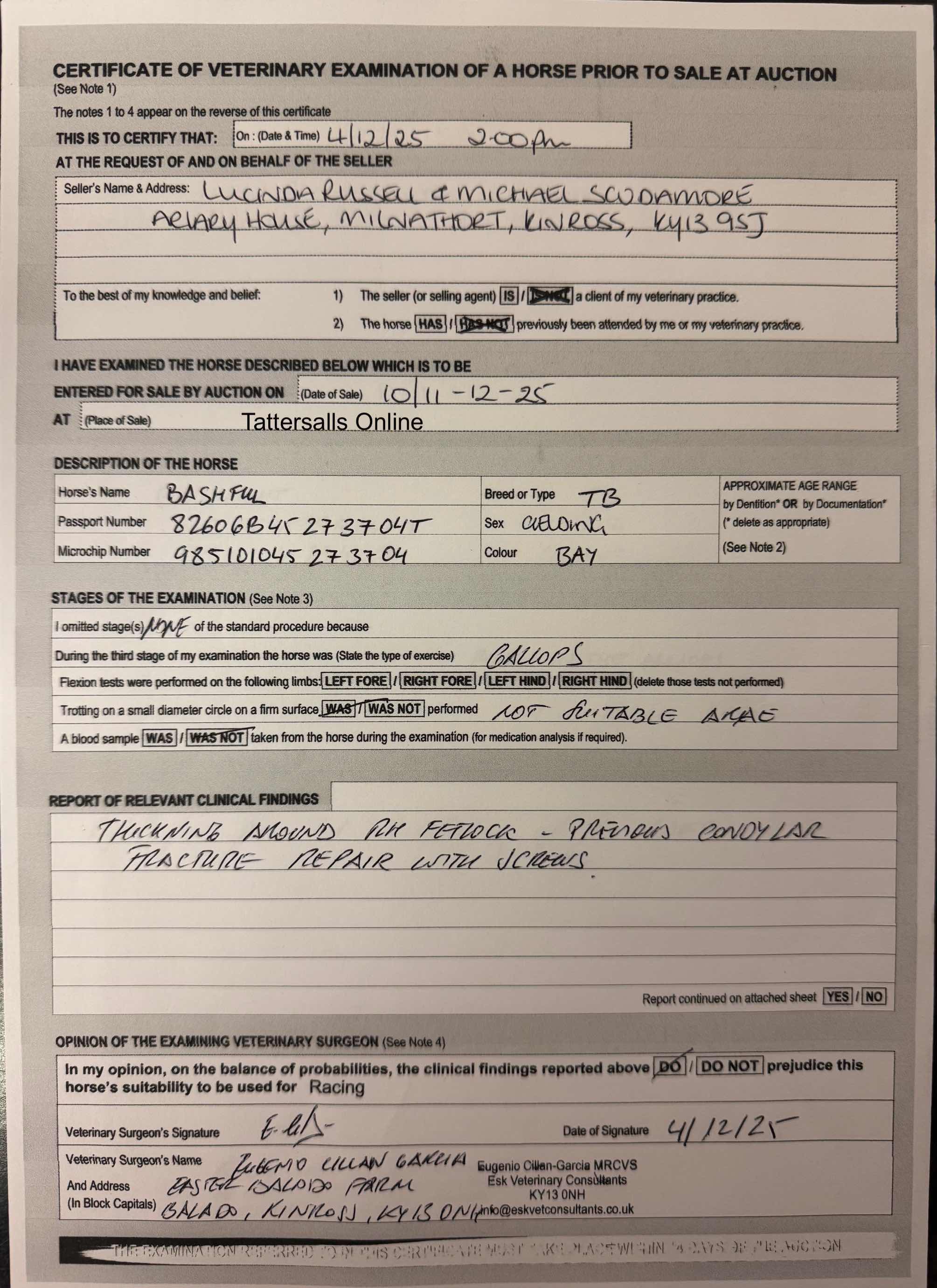 For time sensitive requests please call Tattersalls on +44(0)1638665931