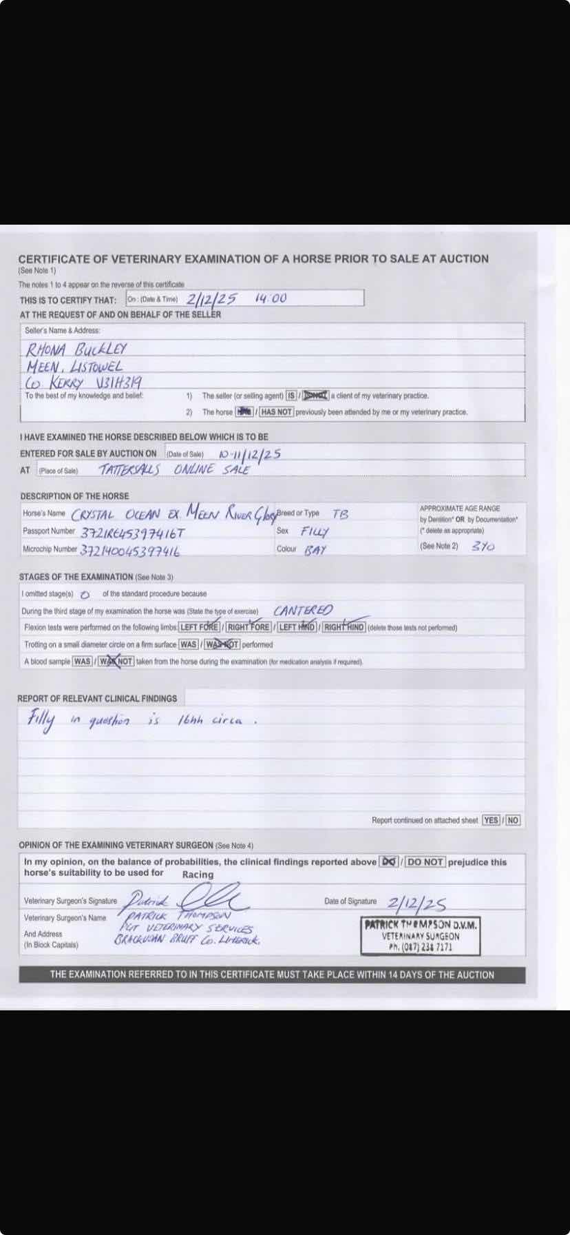 For time sensitive requests please call Tattersalls on +44(0)1638665931