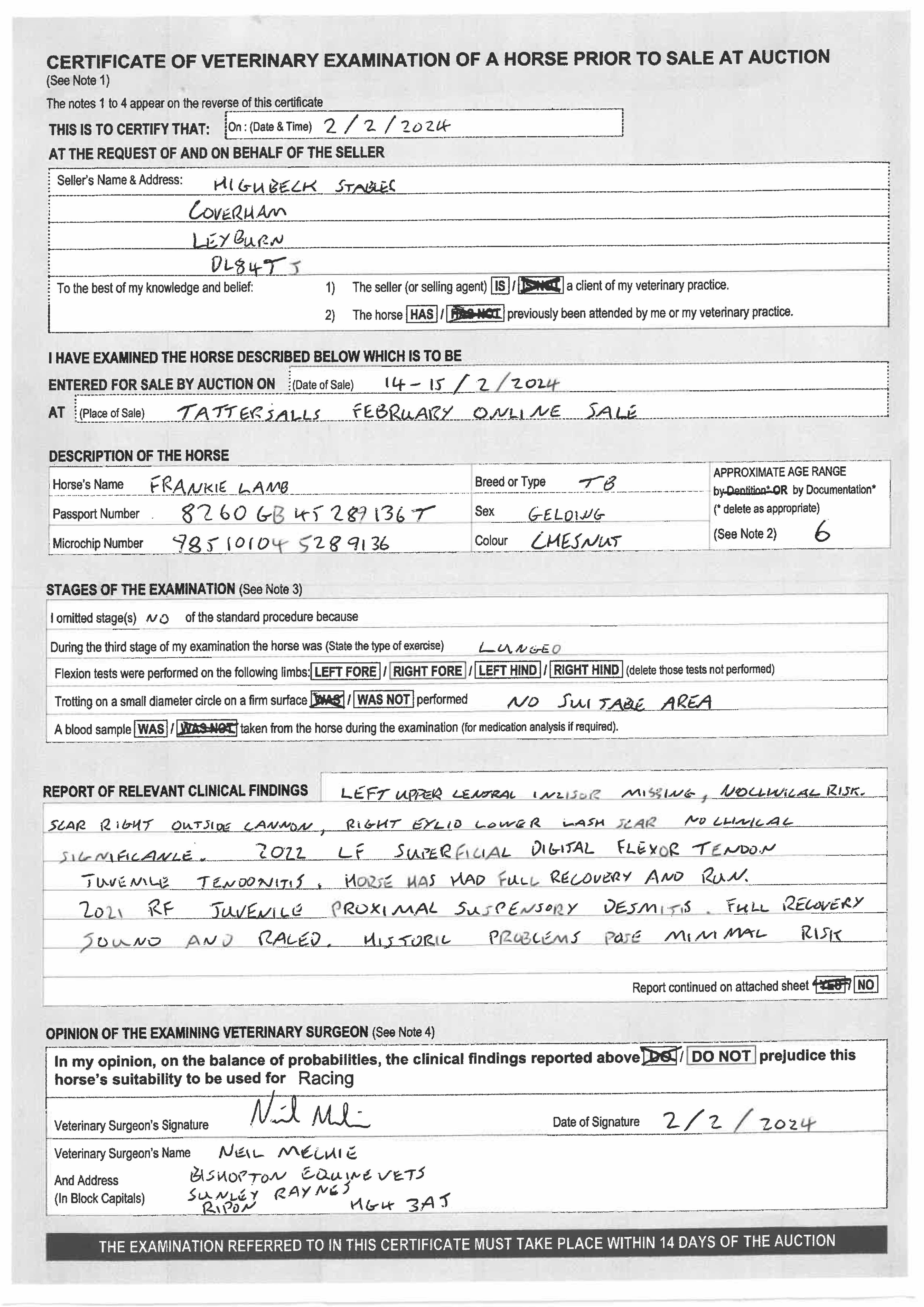 Vendor's Notes: A lovely, big strong horse with plenty of scope. Has been schooled at home and jumps nicely. Shown promise in two NH Flat Races ready to progress.