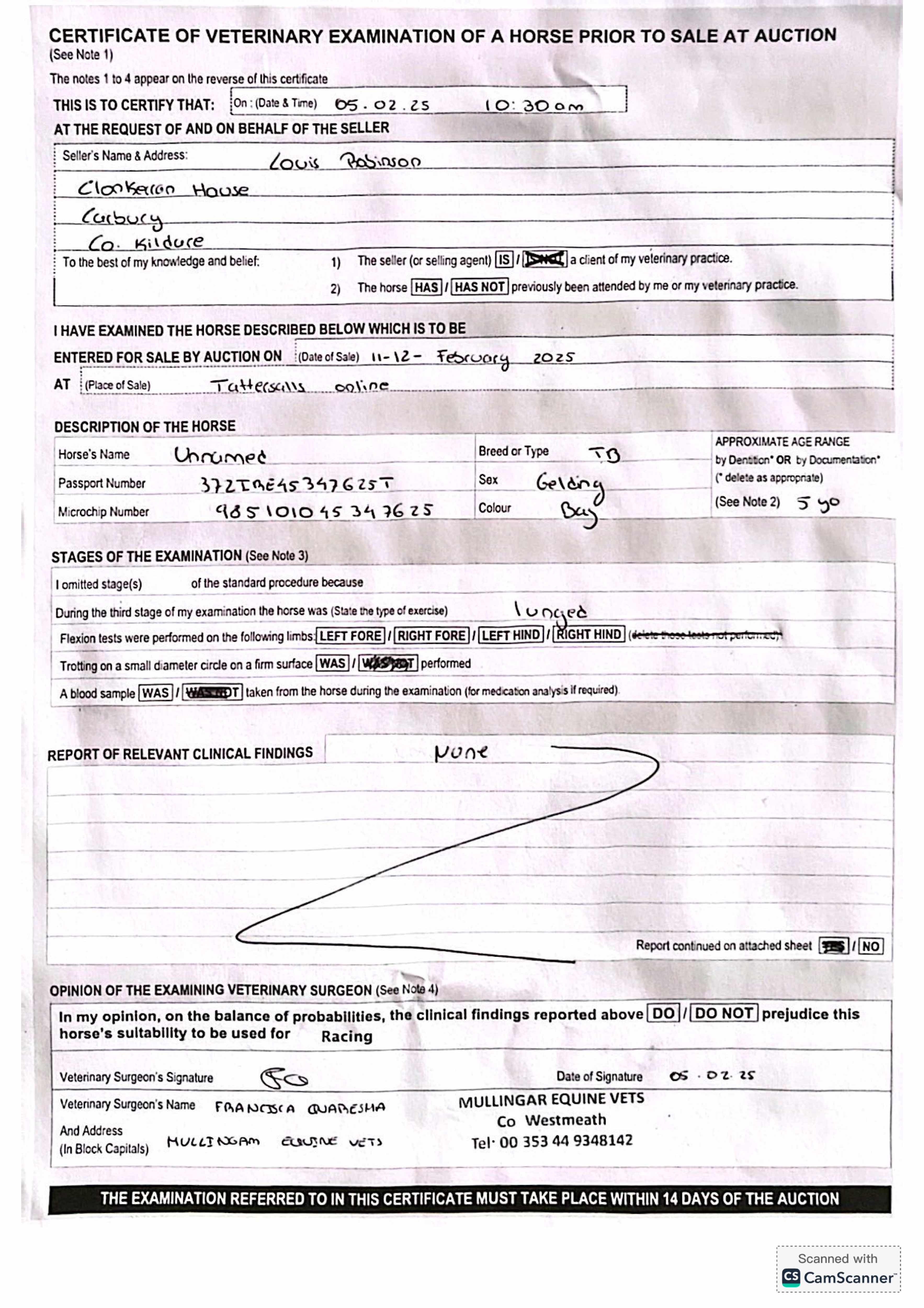 For time sensitive requests please call Tattersalls on +44(0)1638665931