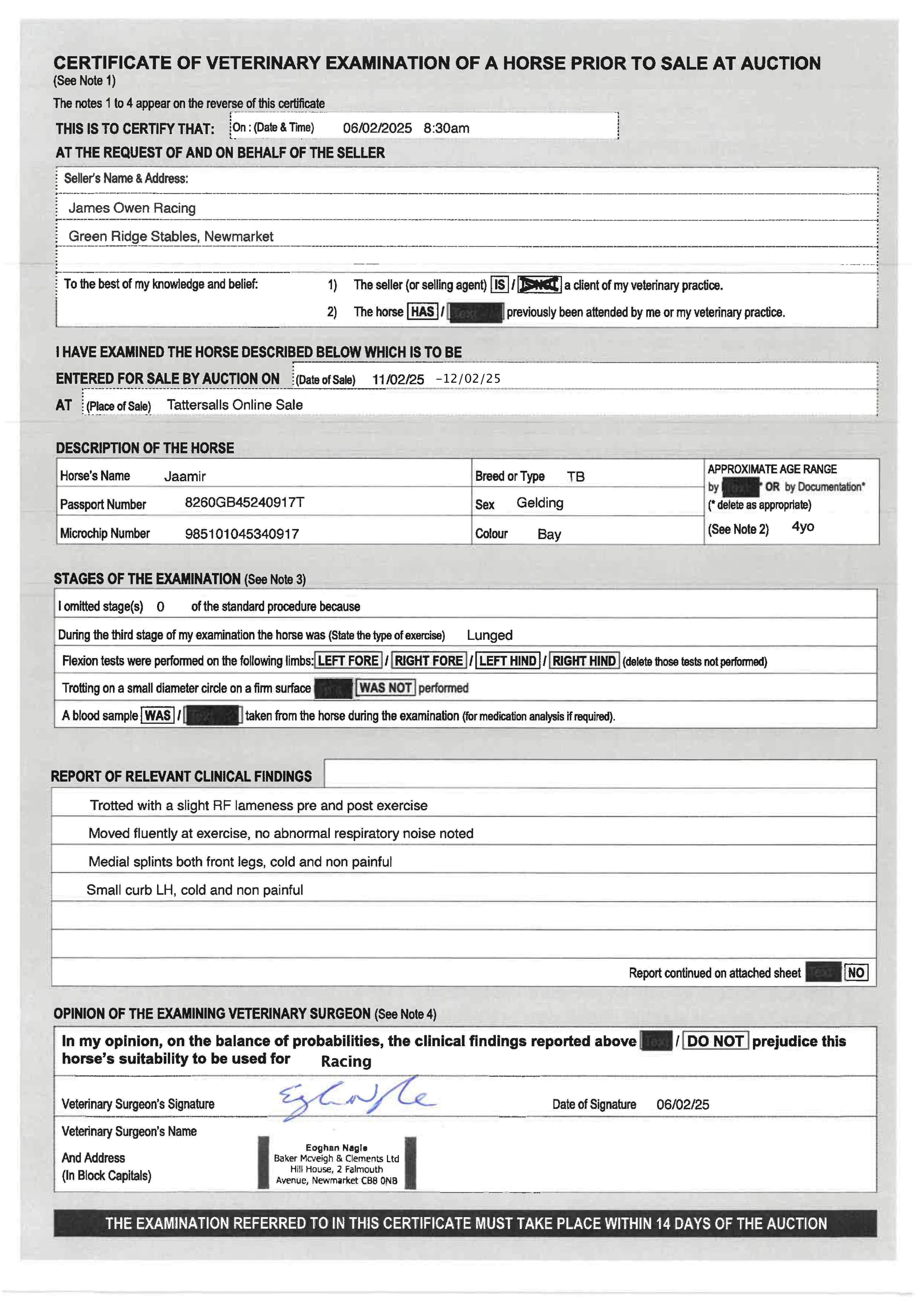 For time sensitive requests please call Tattersalls on +44(0)1638665931