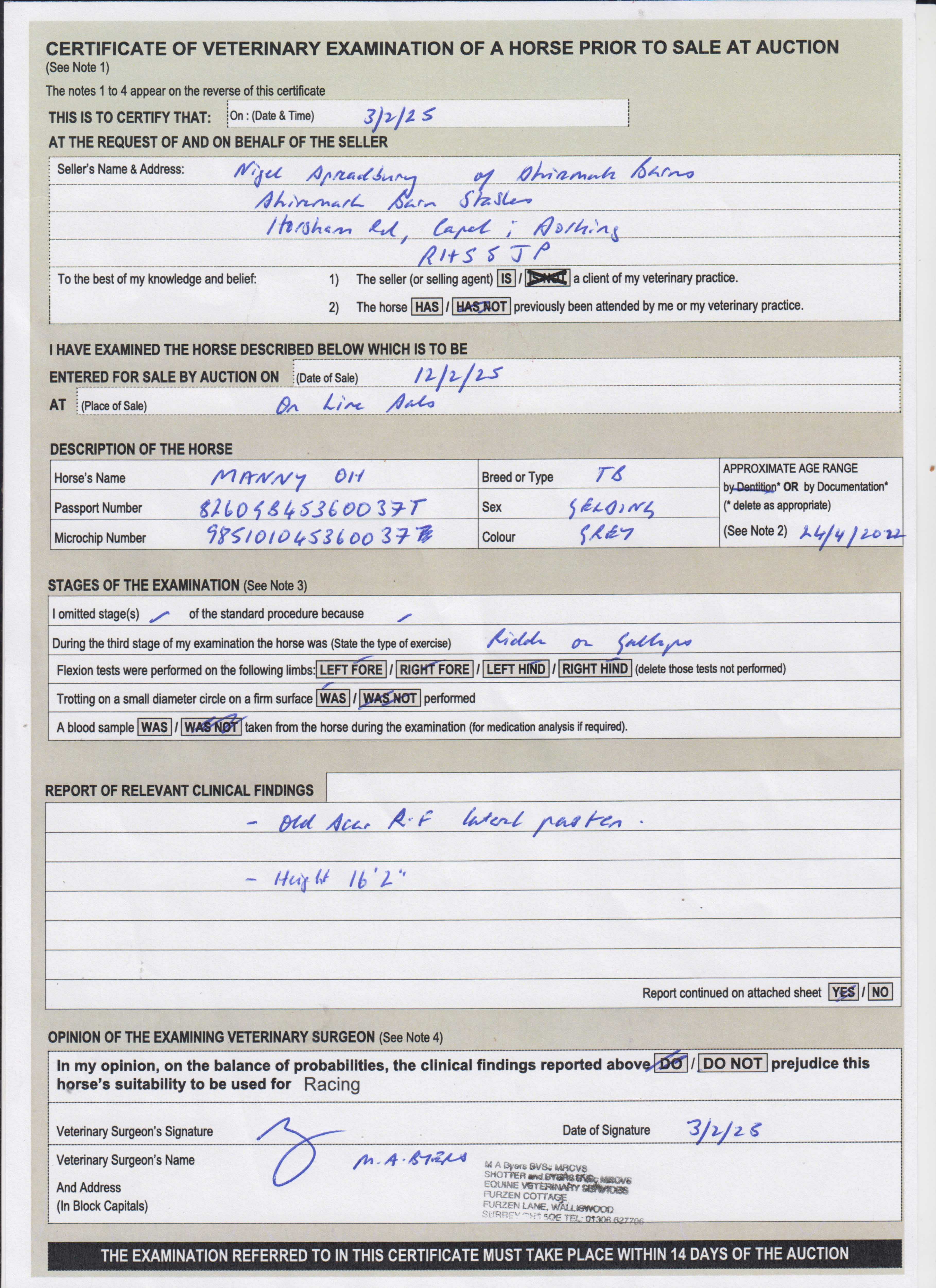 Vendor's Notes: Grey Gelding