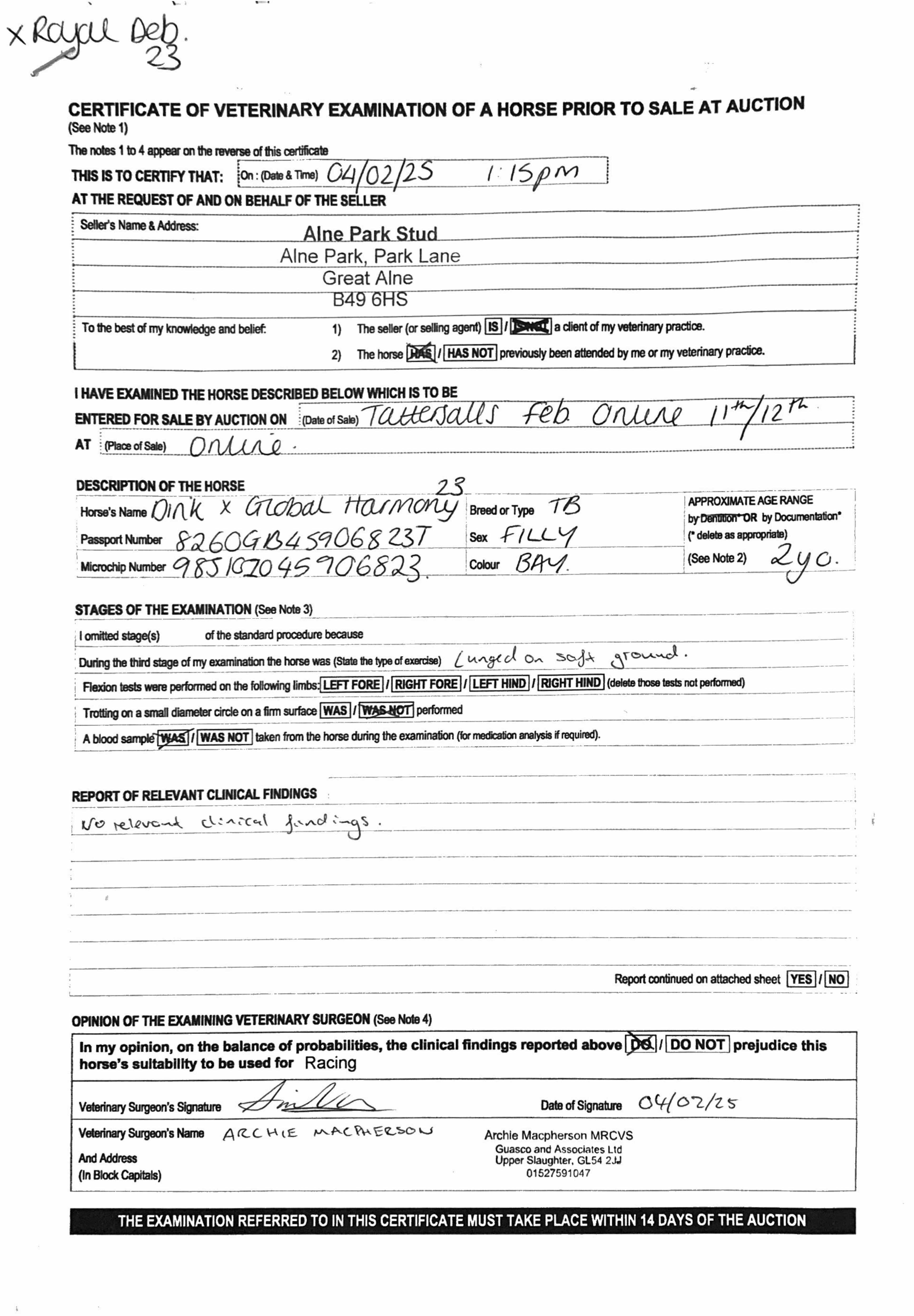 Consignor: Alne Park Stud