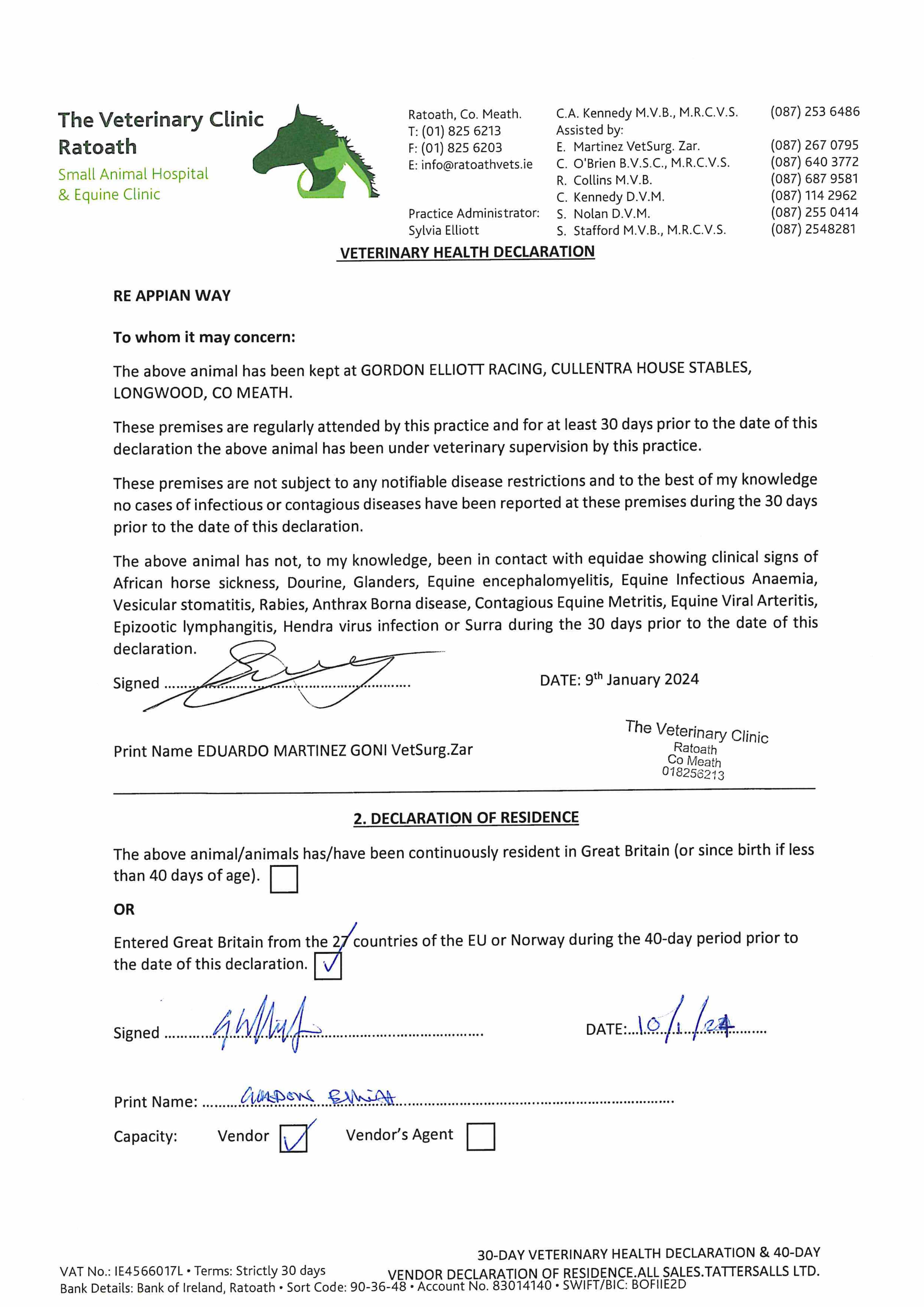 Contact: Gordon Elliott ✆ +353469555051 ✉ office@gordonelliottracing.com