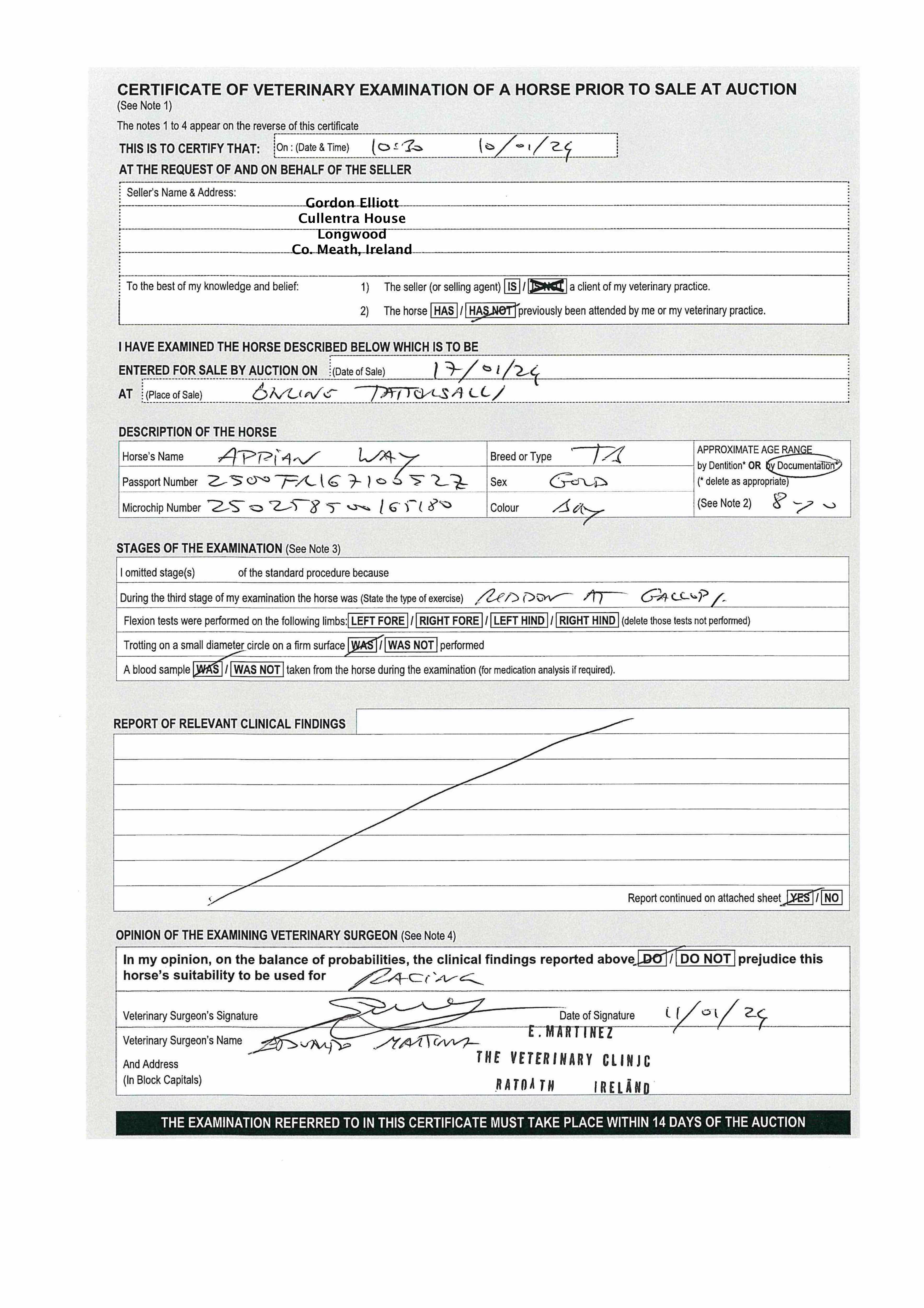 Vendor's Notes: Appian way is a two timer winner over hurdles in Ireland and is still a maiden on the flat having come a close 2nd in a 1m6f handicap at Navan. He is a versatile horse who goes on a variety of ground and could be a very useful handicapper.