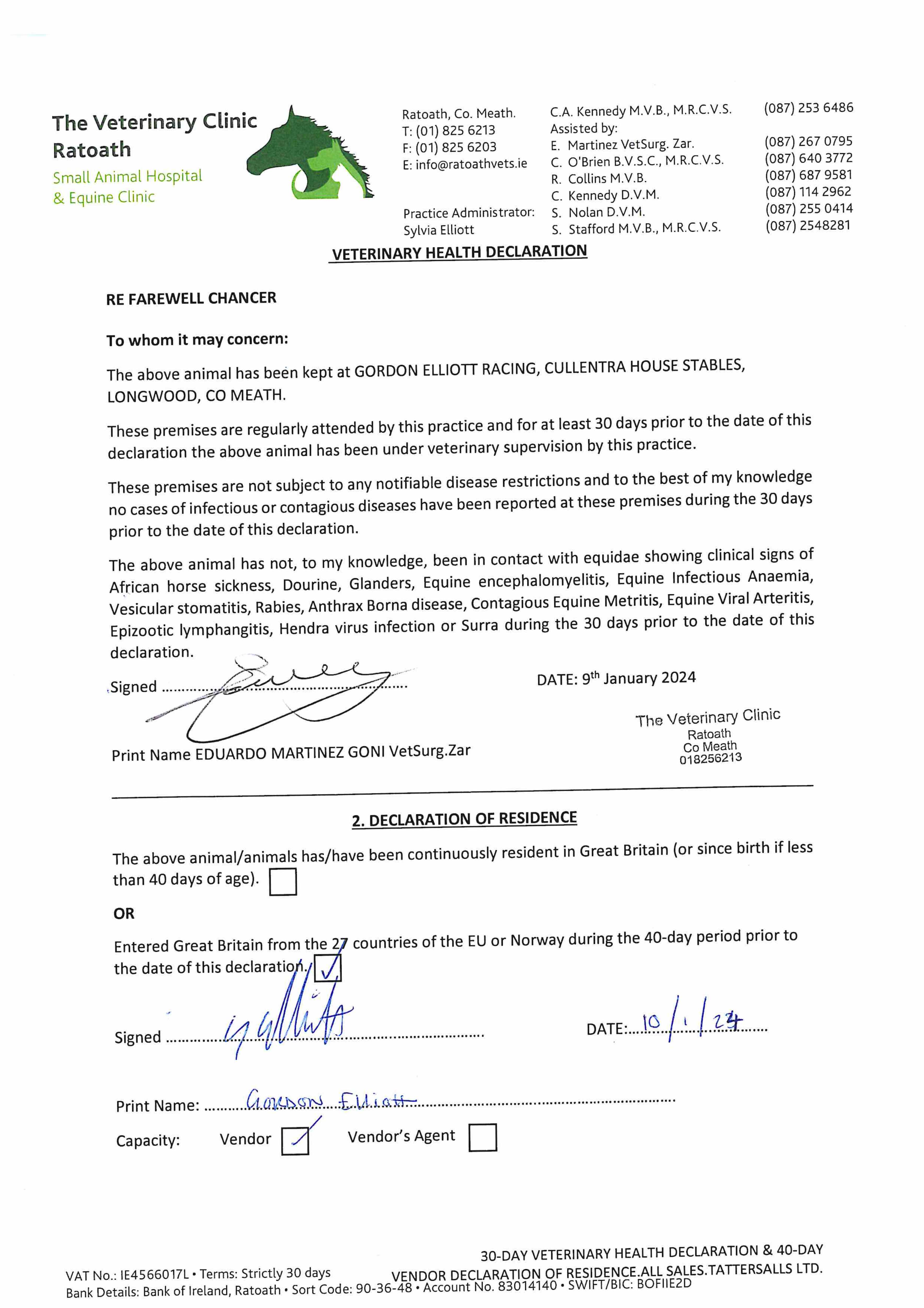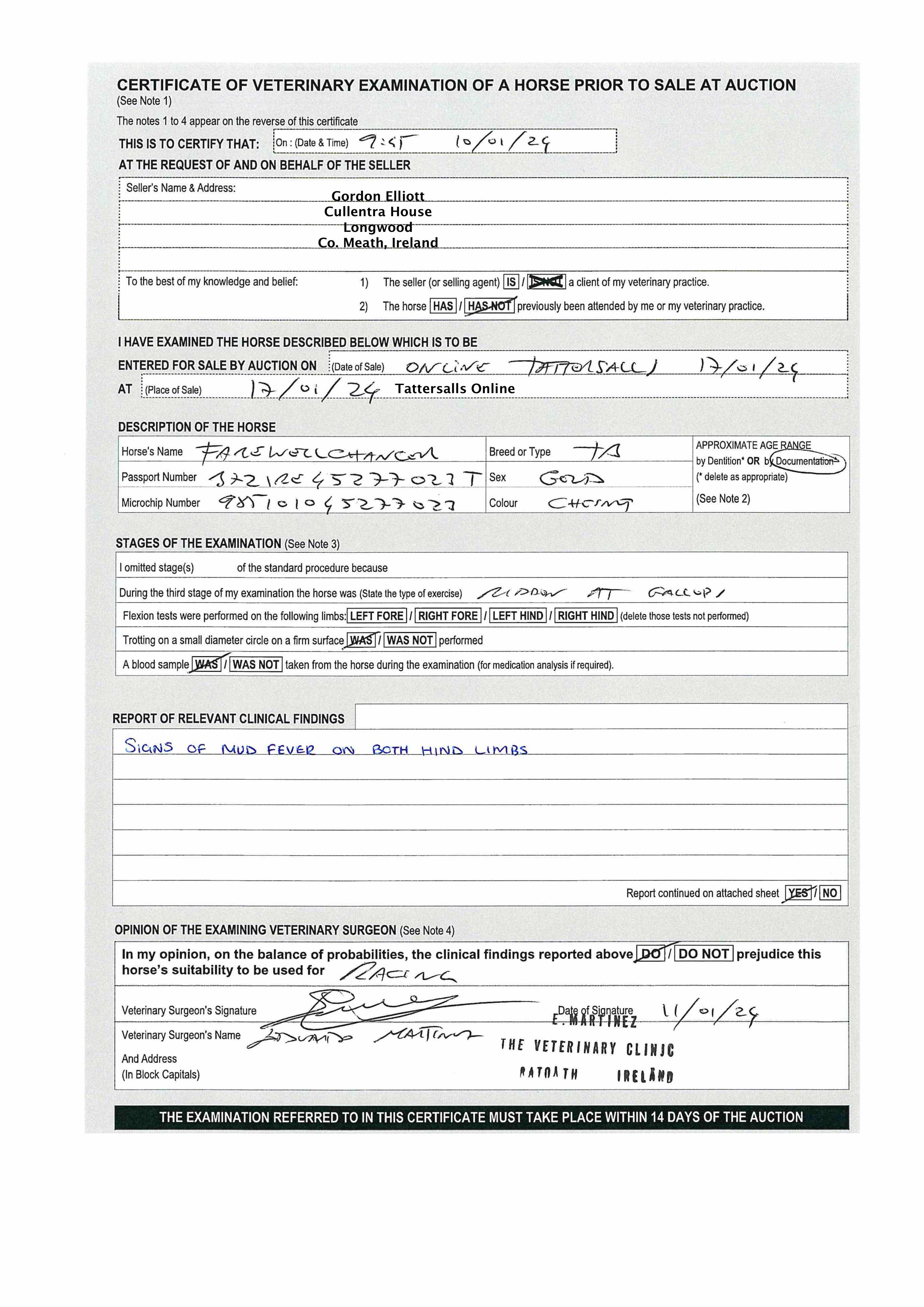 Contact: Gordon Elliott  ✆ +353469555051  ✉ office@gordonelliottracing.com