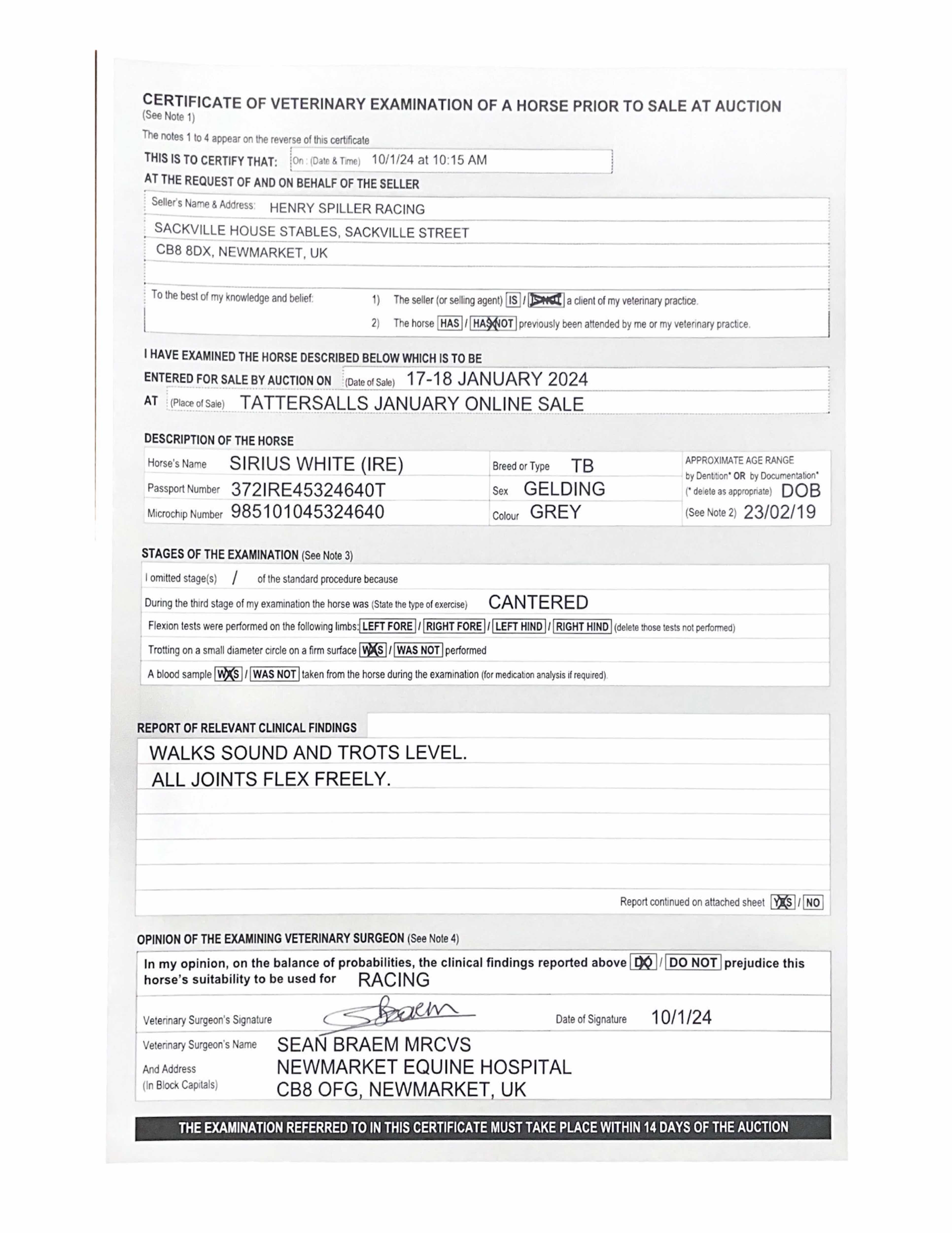 Monday 15 January:  Has run since publication of catalogue. 11/01/24 - finished 6th of 8 in 1m (Class 6) Handicap at Chelmsford.