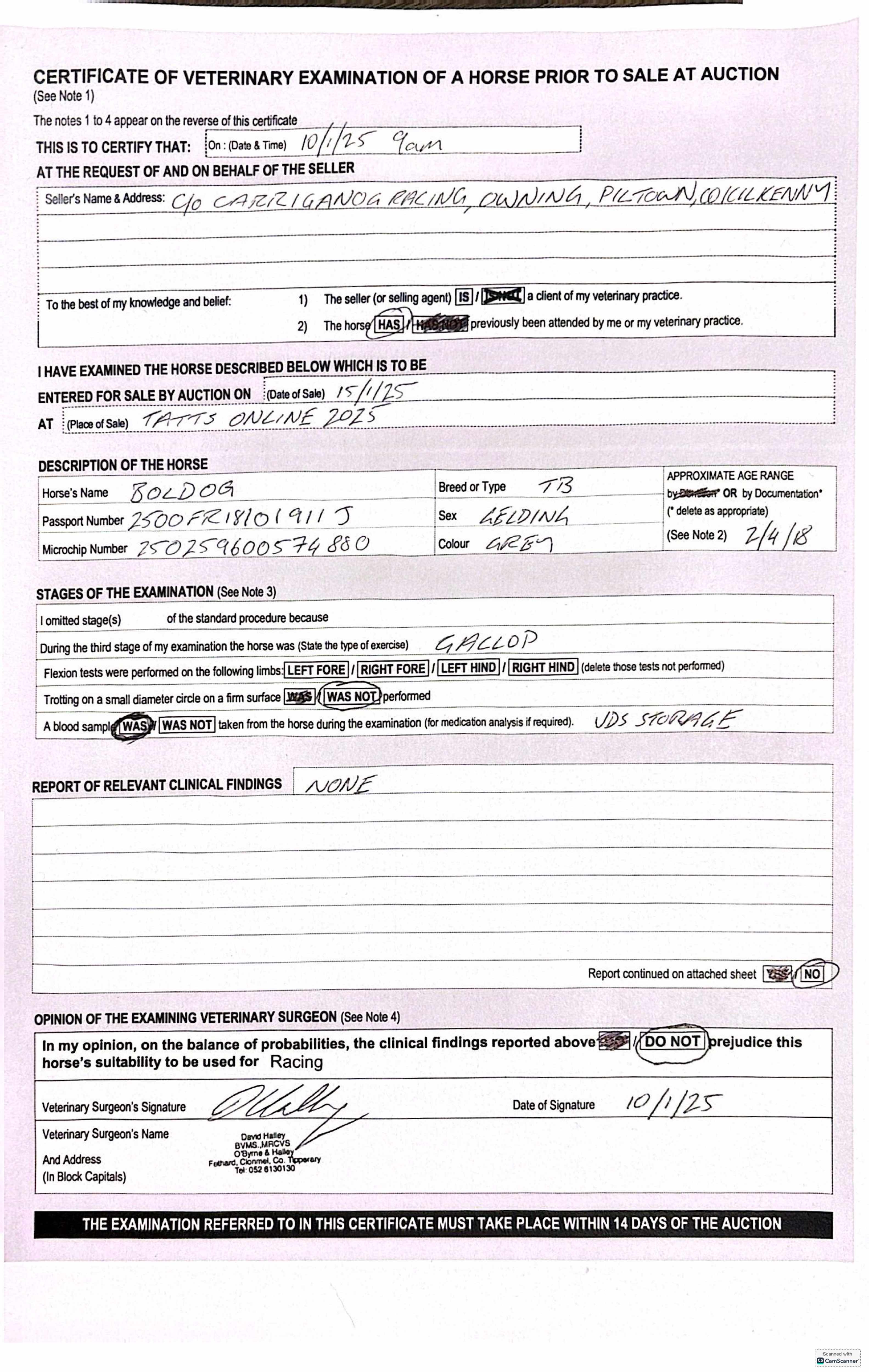 Consignor: Carriganog Racing, Ireland (J. P. O'Brien)