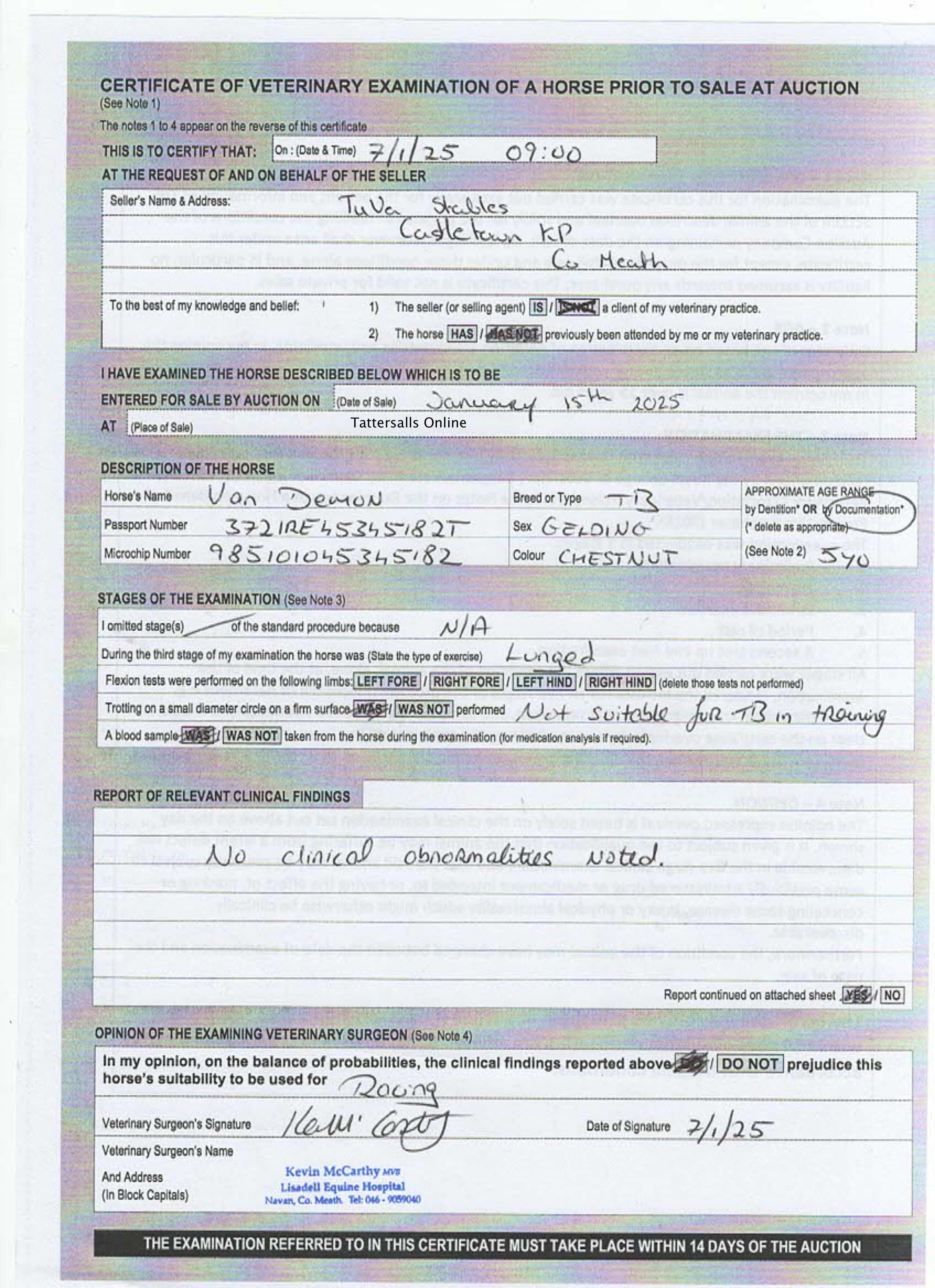 For time sensitive requests please call Tattersalls on +44(0)1638665931