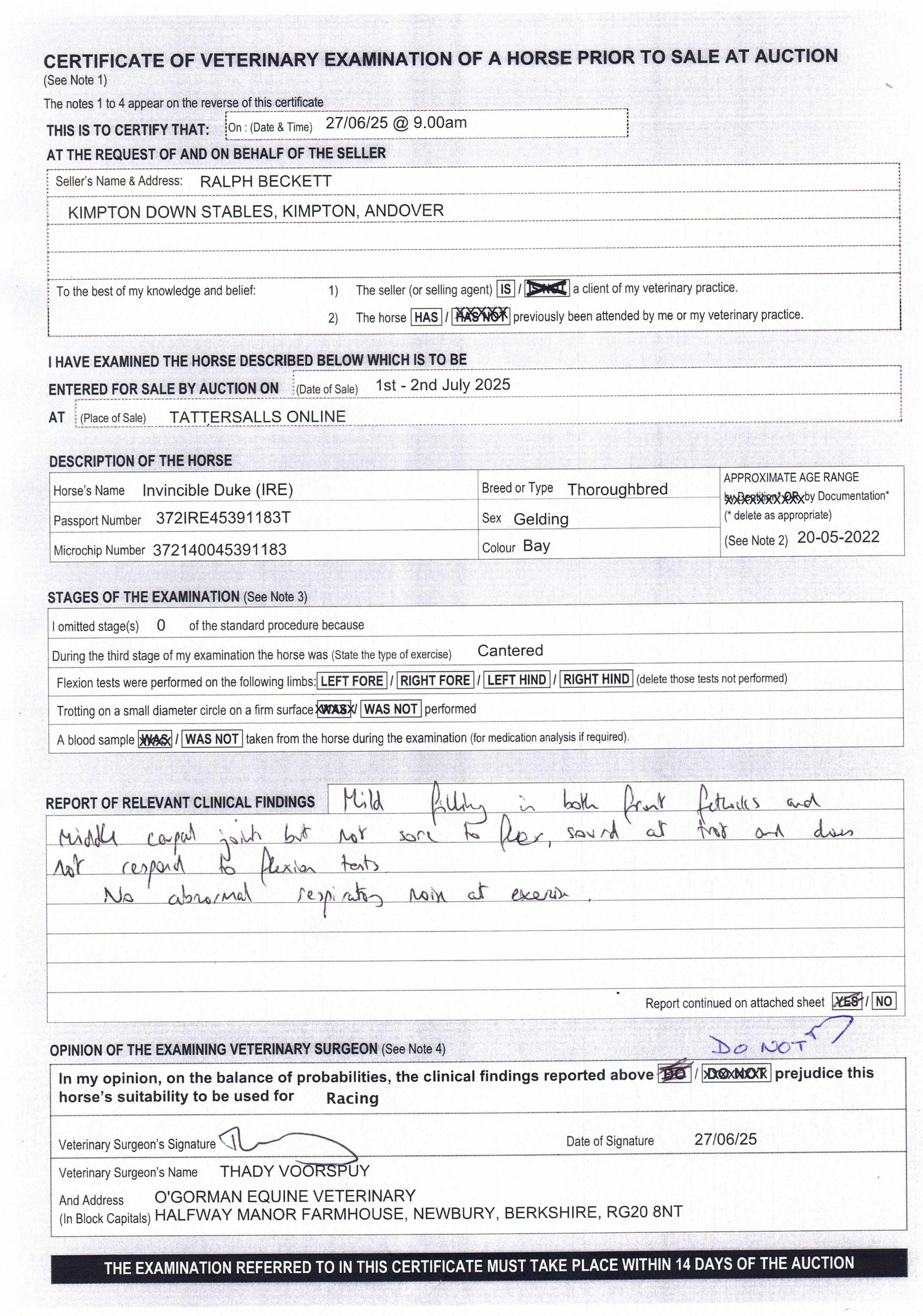 For time sensitive requests please call Tattersalls on +44(0)1638665931