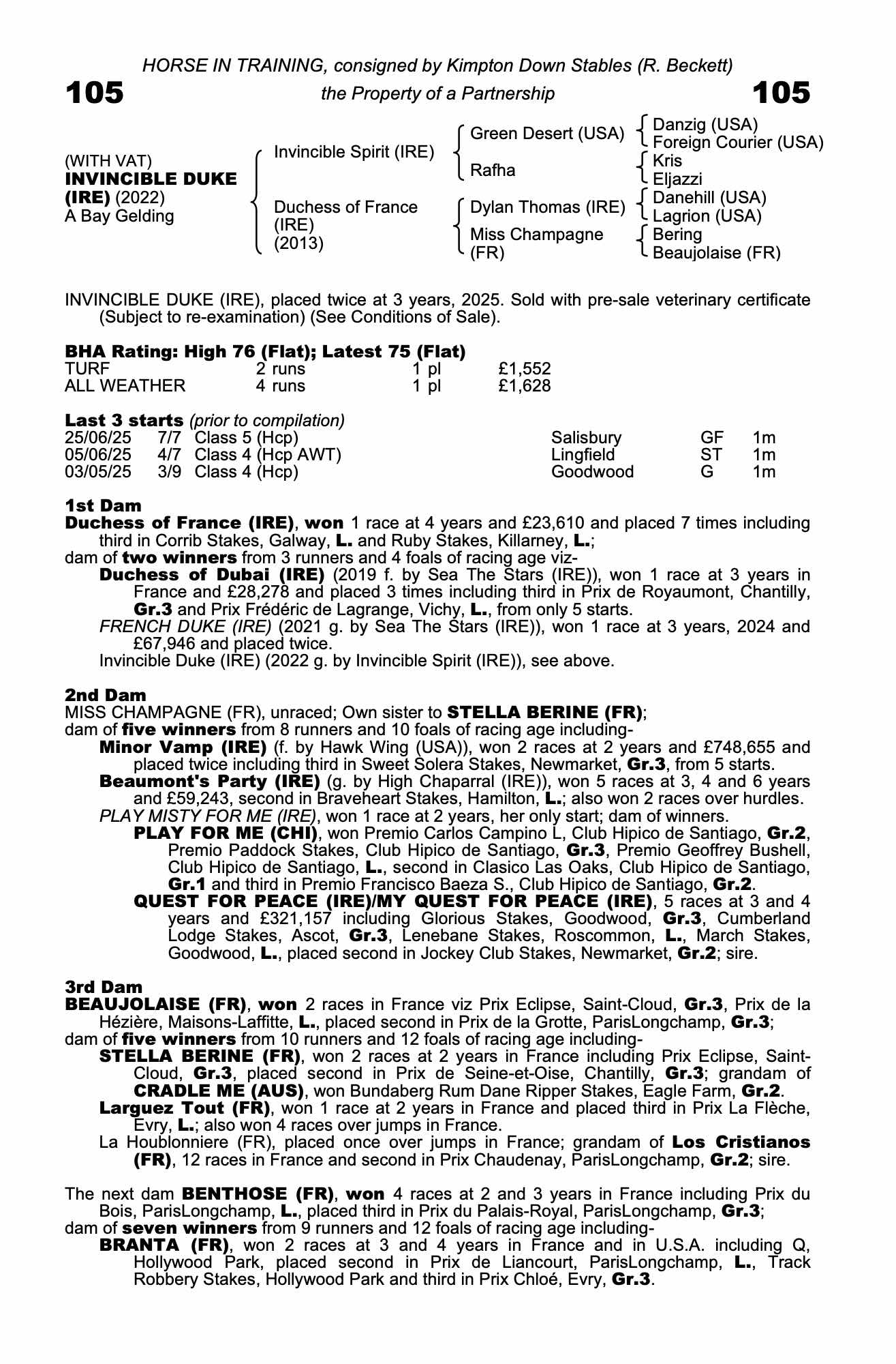 Vendor's Notes: 3 year old, bay Gelding by Invincible Spirit out of Duchess of France.