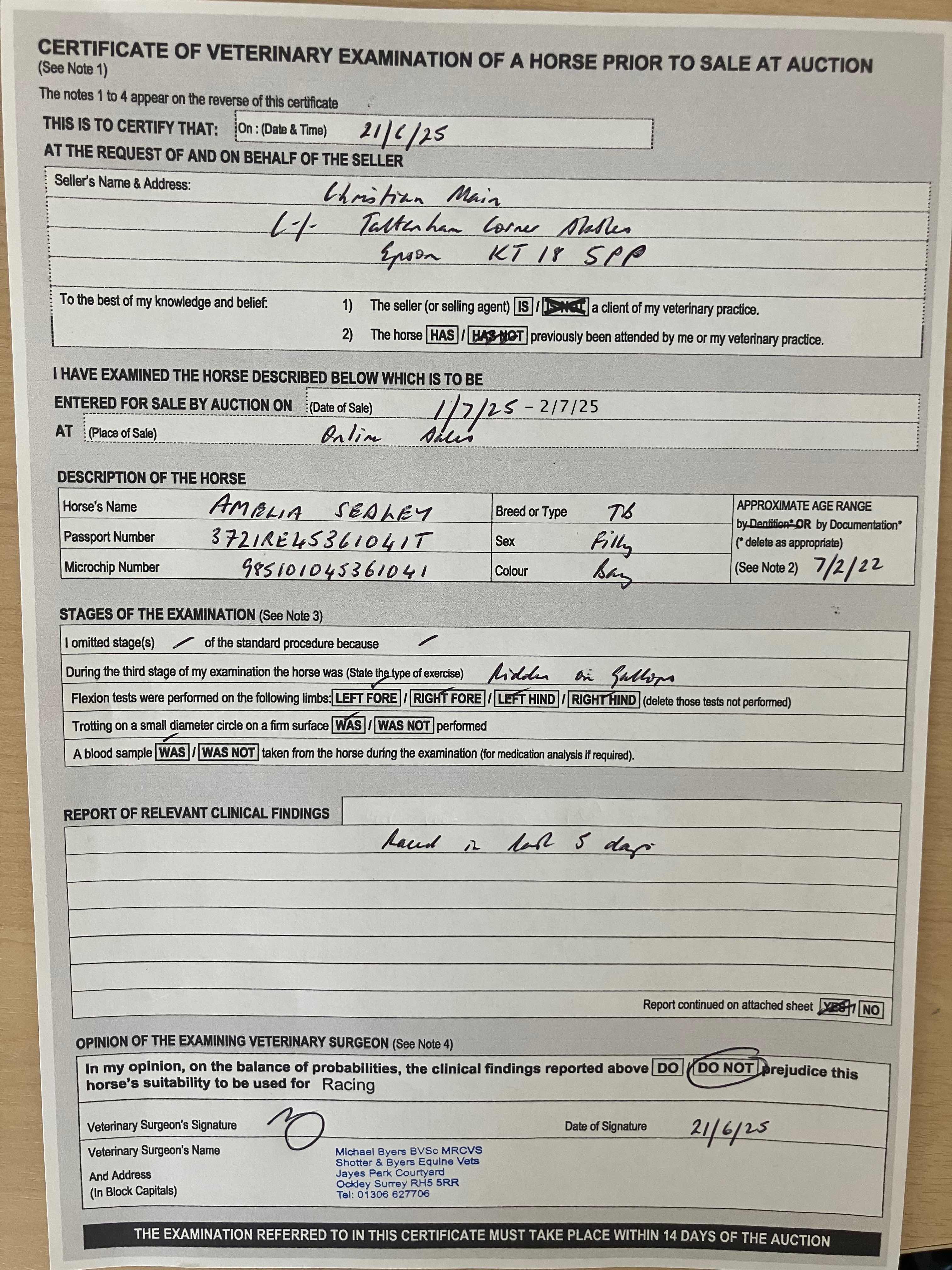 For time sensitive requests please call Tattersalls on +44(0)1638665931