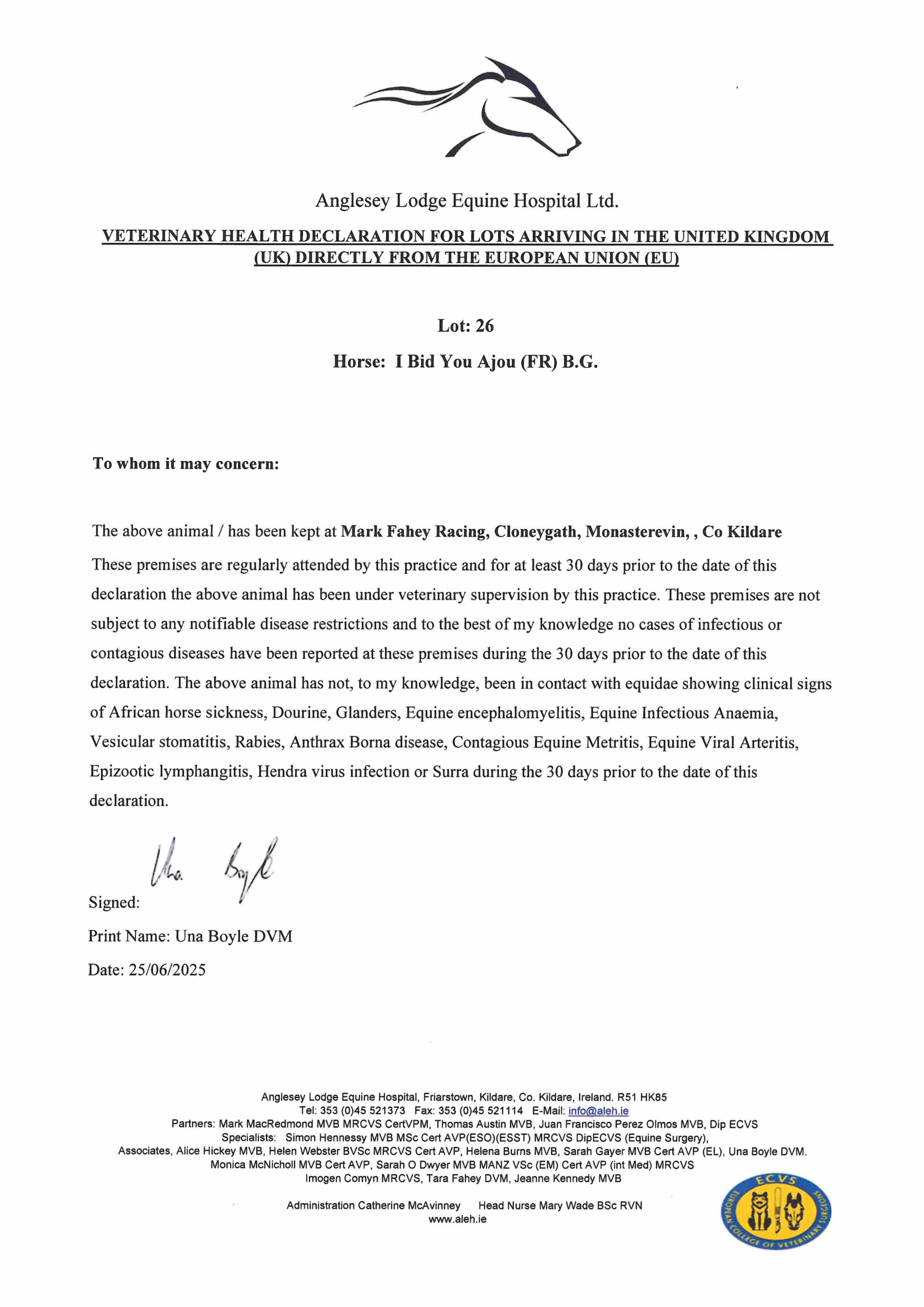 Consignor: Mark Fahey Racing, Ireland