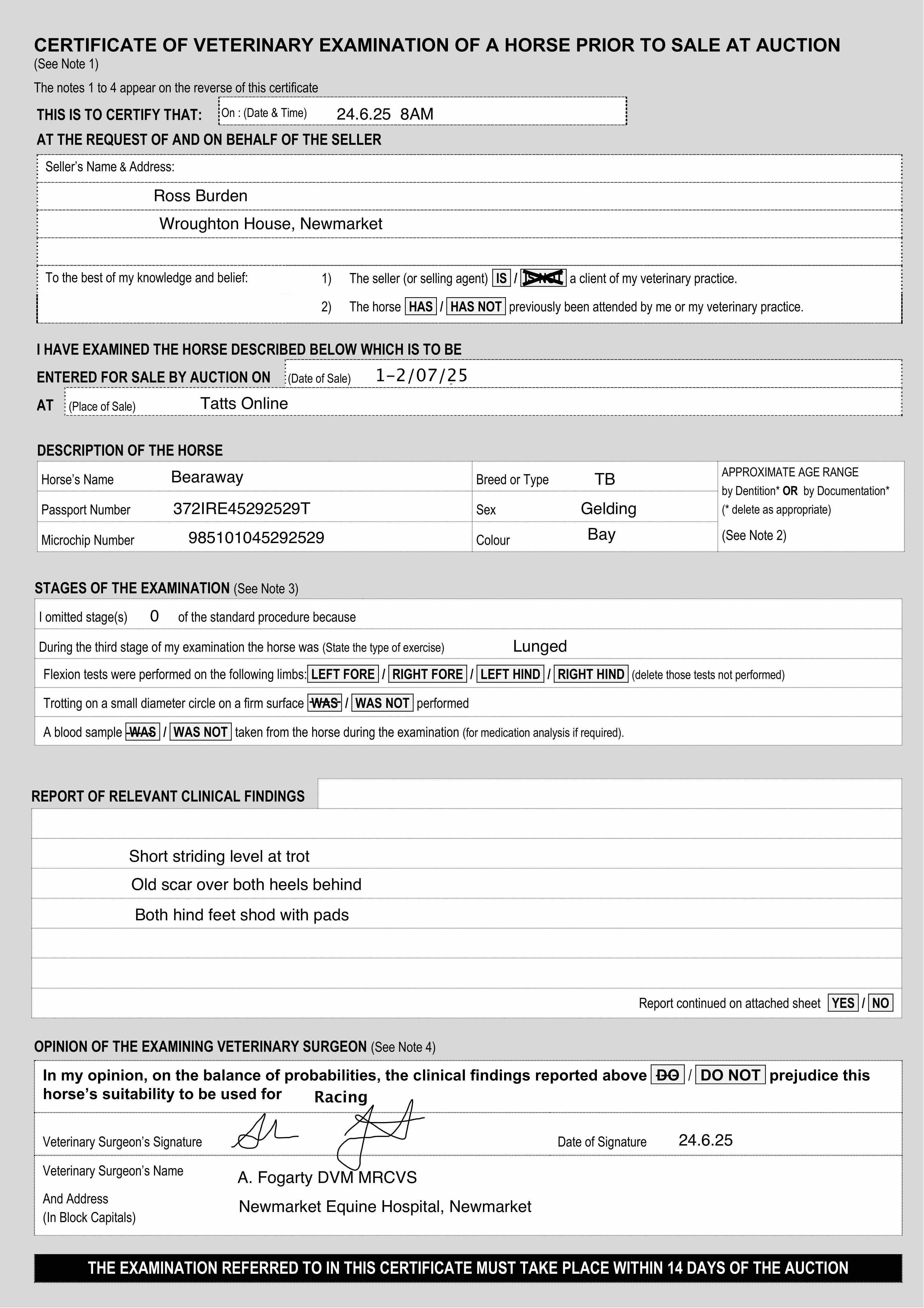 For time sensitive requests please call Tattersalls on +44(0)1638665931