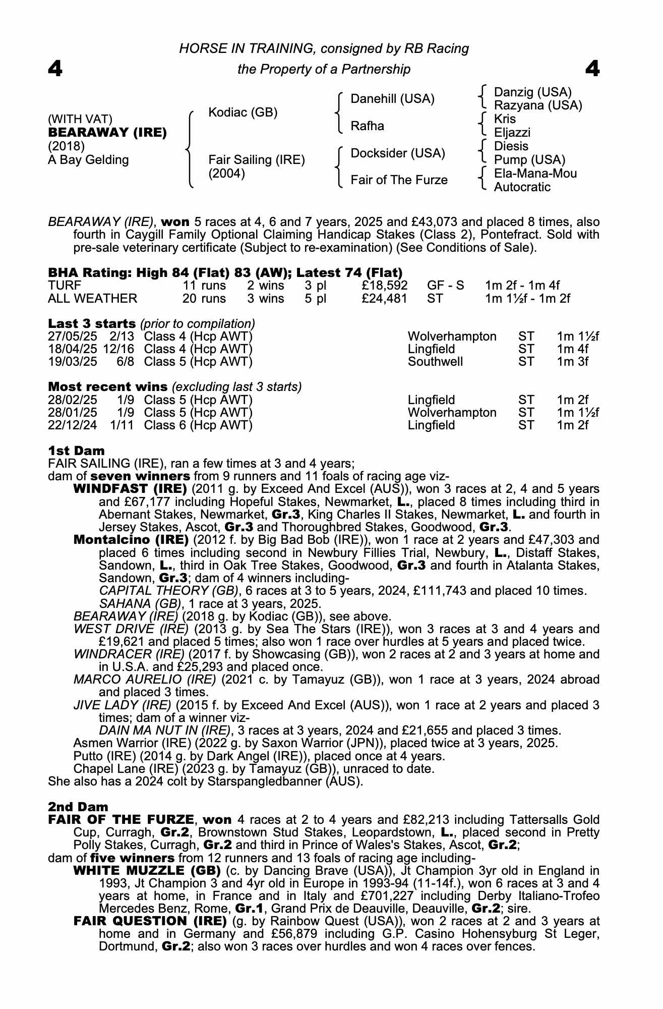 Vendor's Notes: Tough and consistent gelding with winning form on both turf and artificial surfaces.