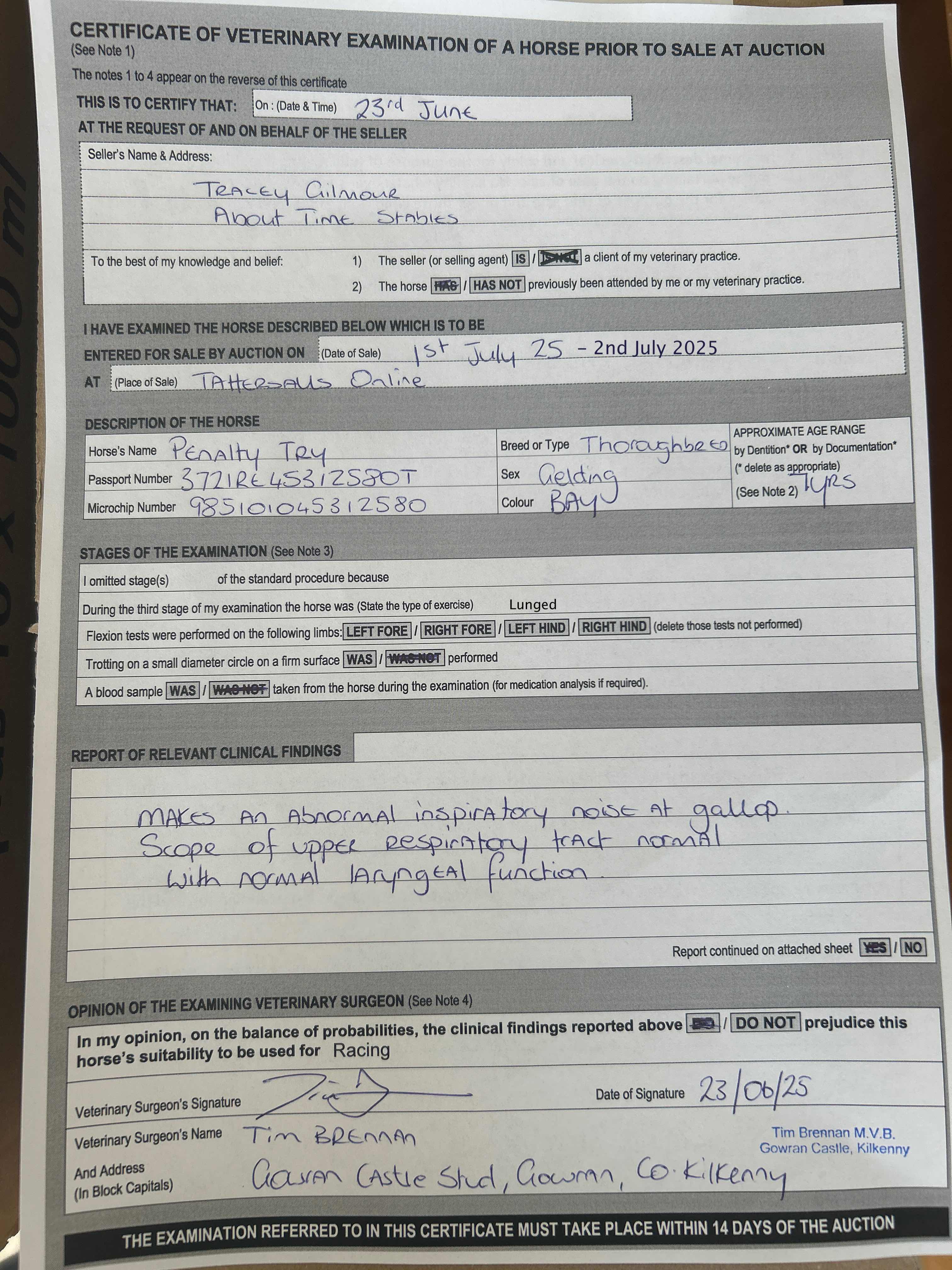Vet Certificate