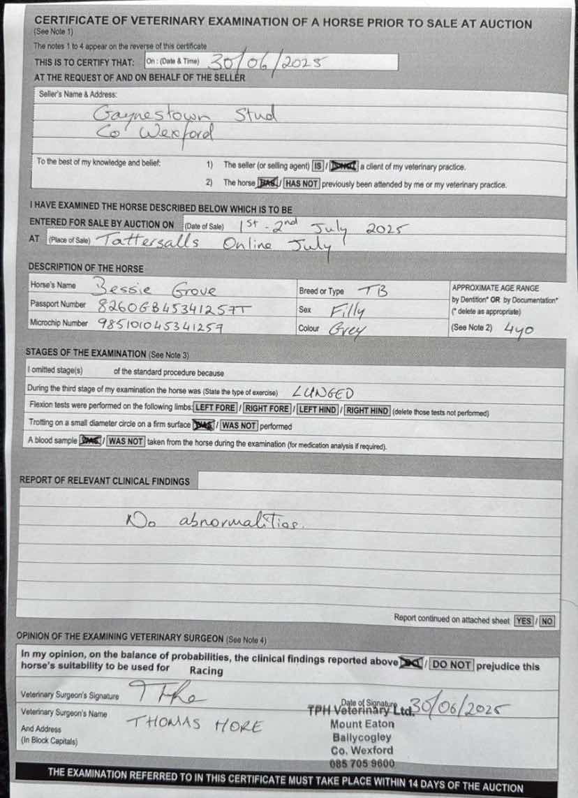For time sensitive requests please call Tattersalls on +44(0)1638665931