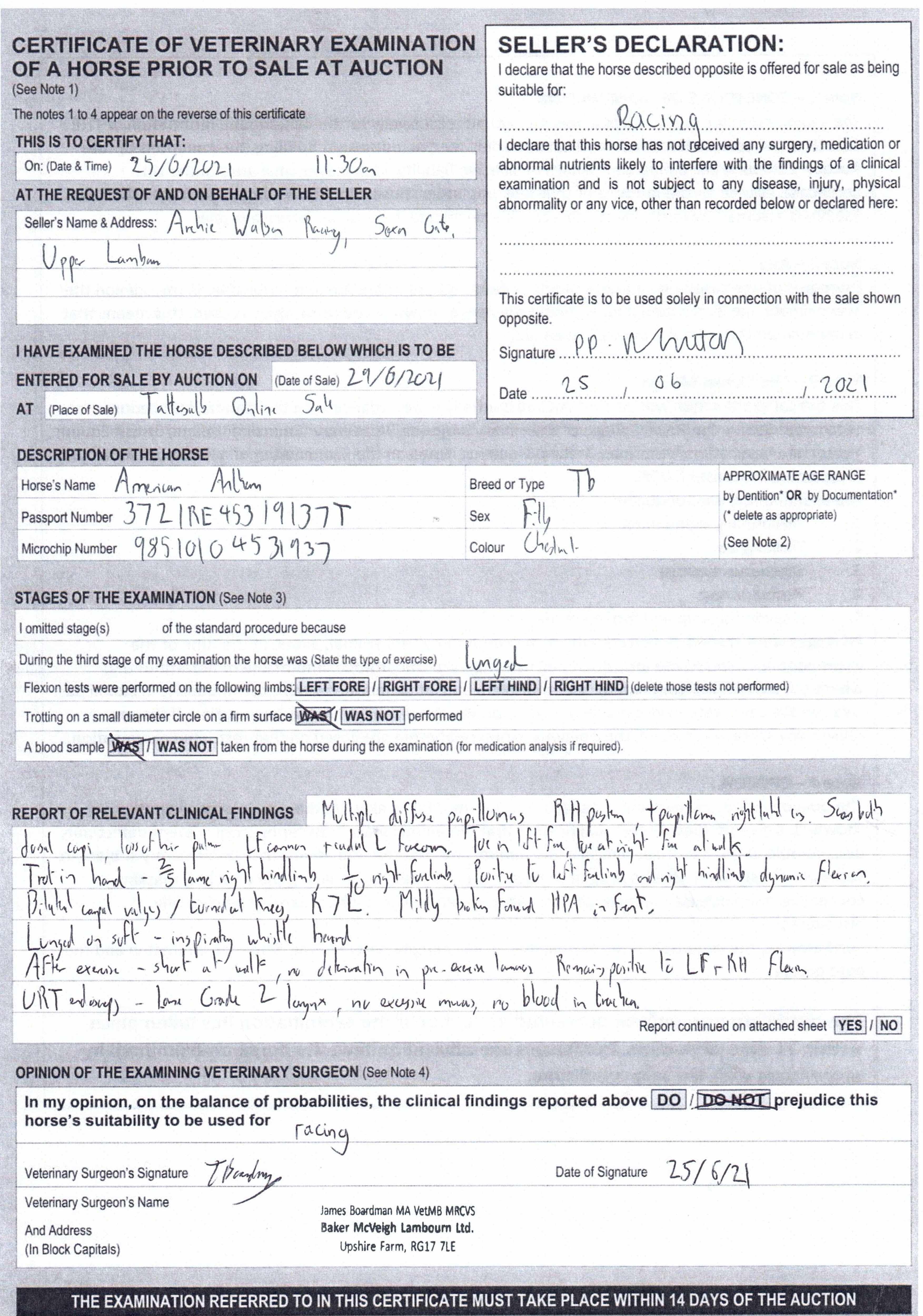 For time sensitive requests please call Tattersalls on +44(0)1638665931