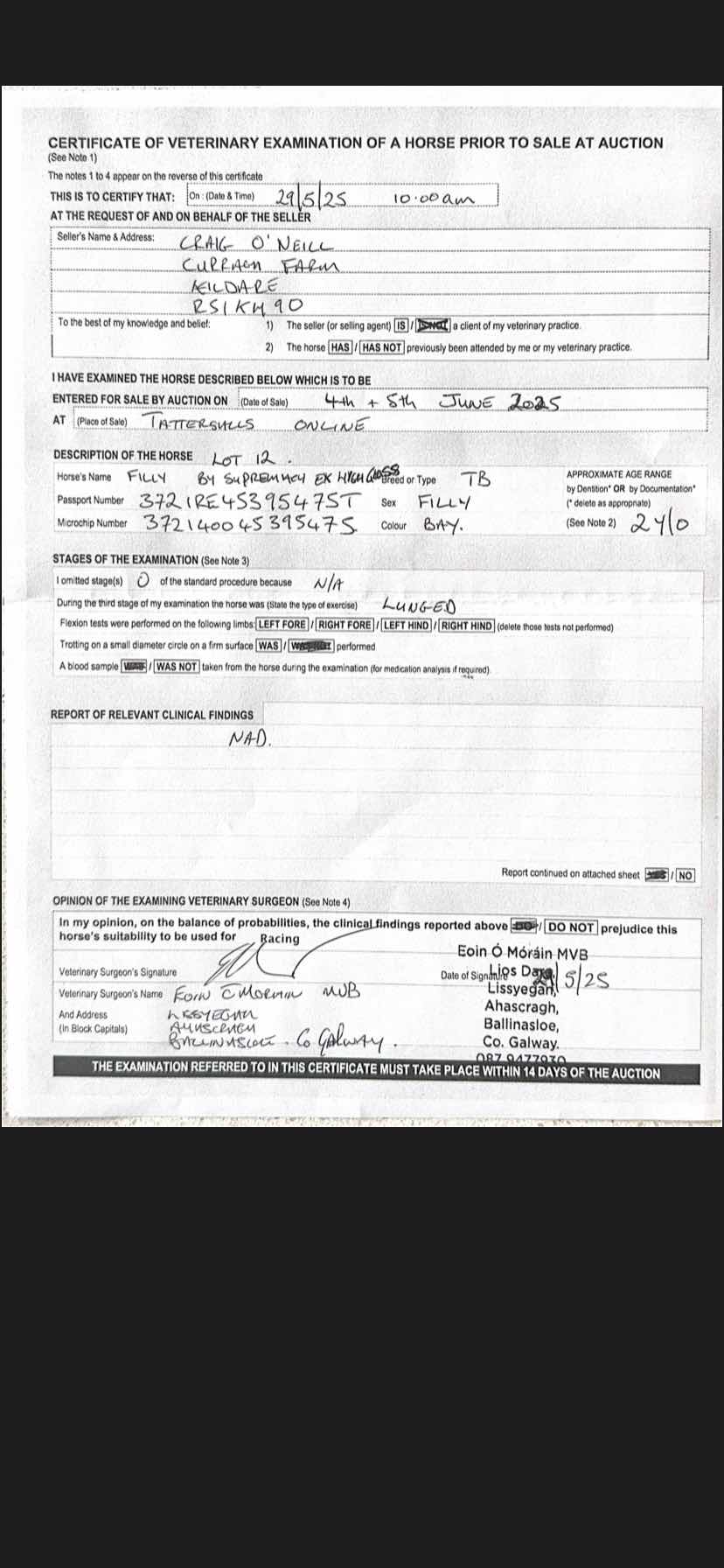 Consignor: Craig O'Neill Bloodstock, Ireland