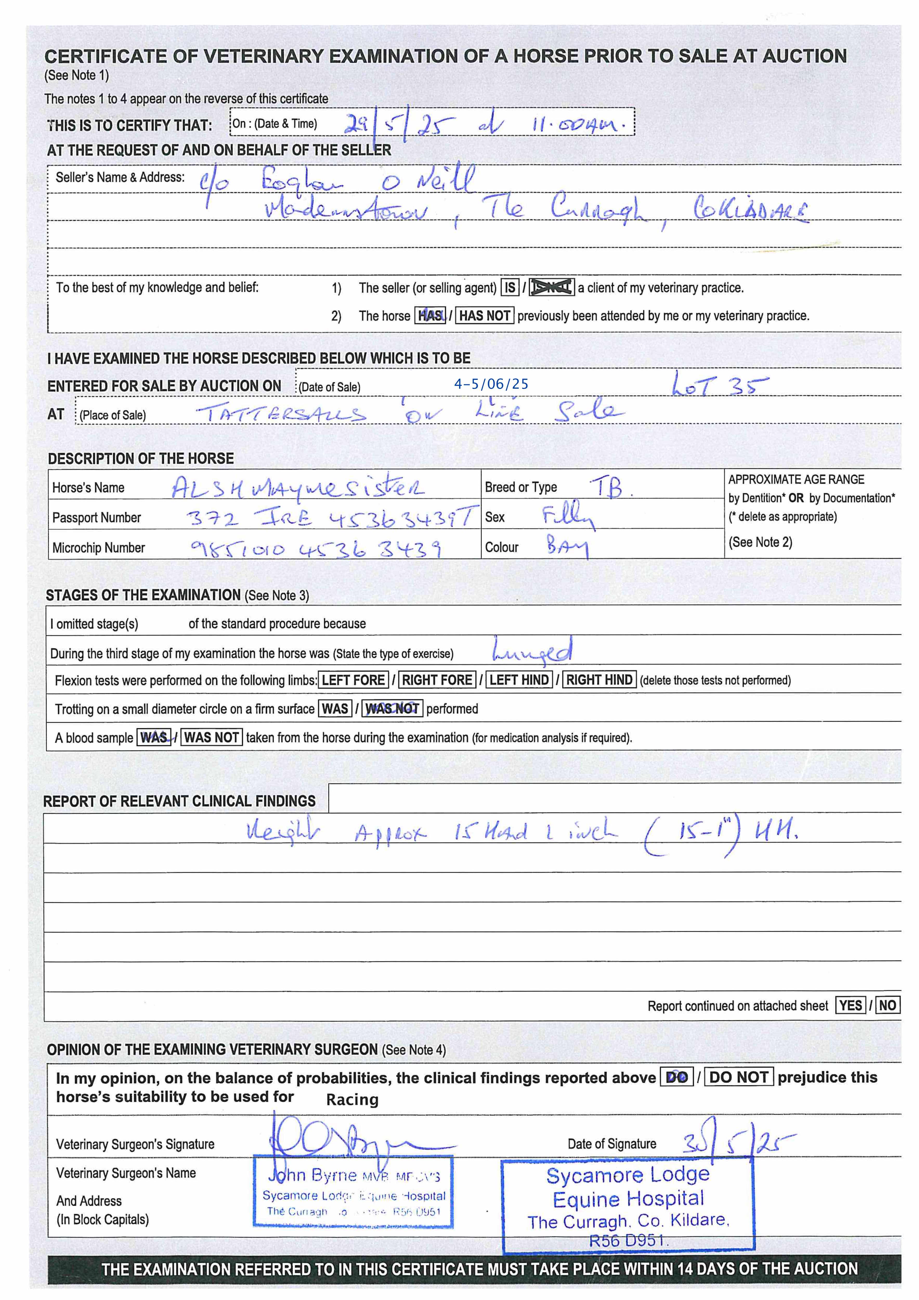 For time sensitive requests please call Tattersalls on +44(0)1638665931