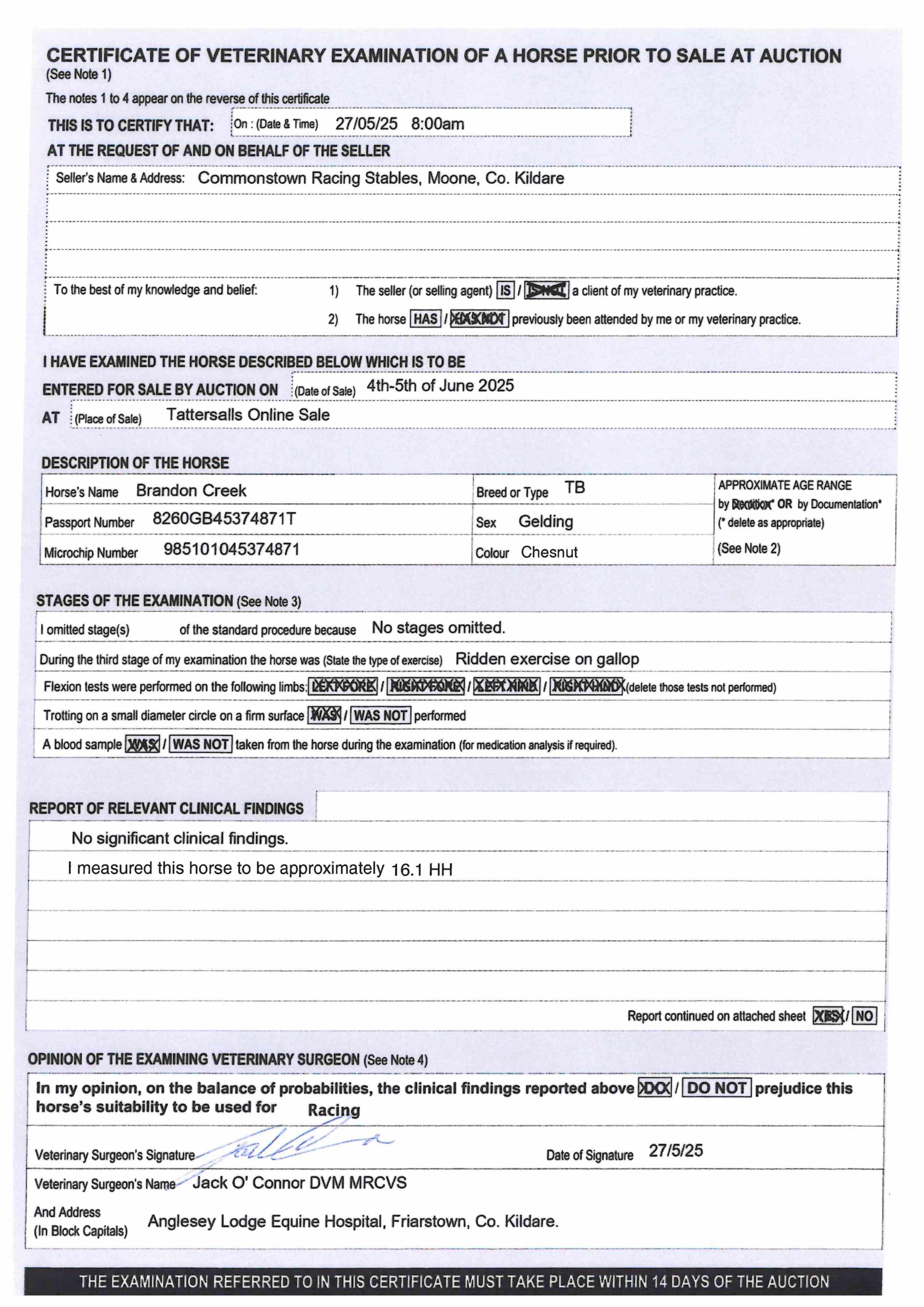 Consignor: Commonstown Stables, Ireland (Mrs J. Harrington)