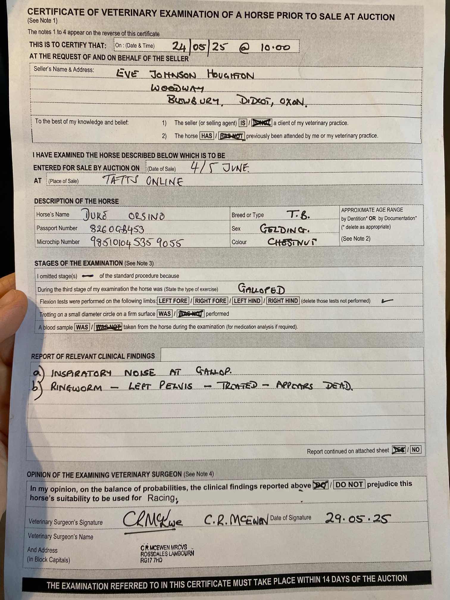 For time sensitive requests please call Tattersalls on +44(0)1638665931