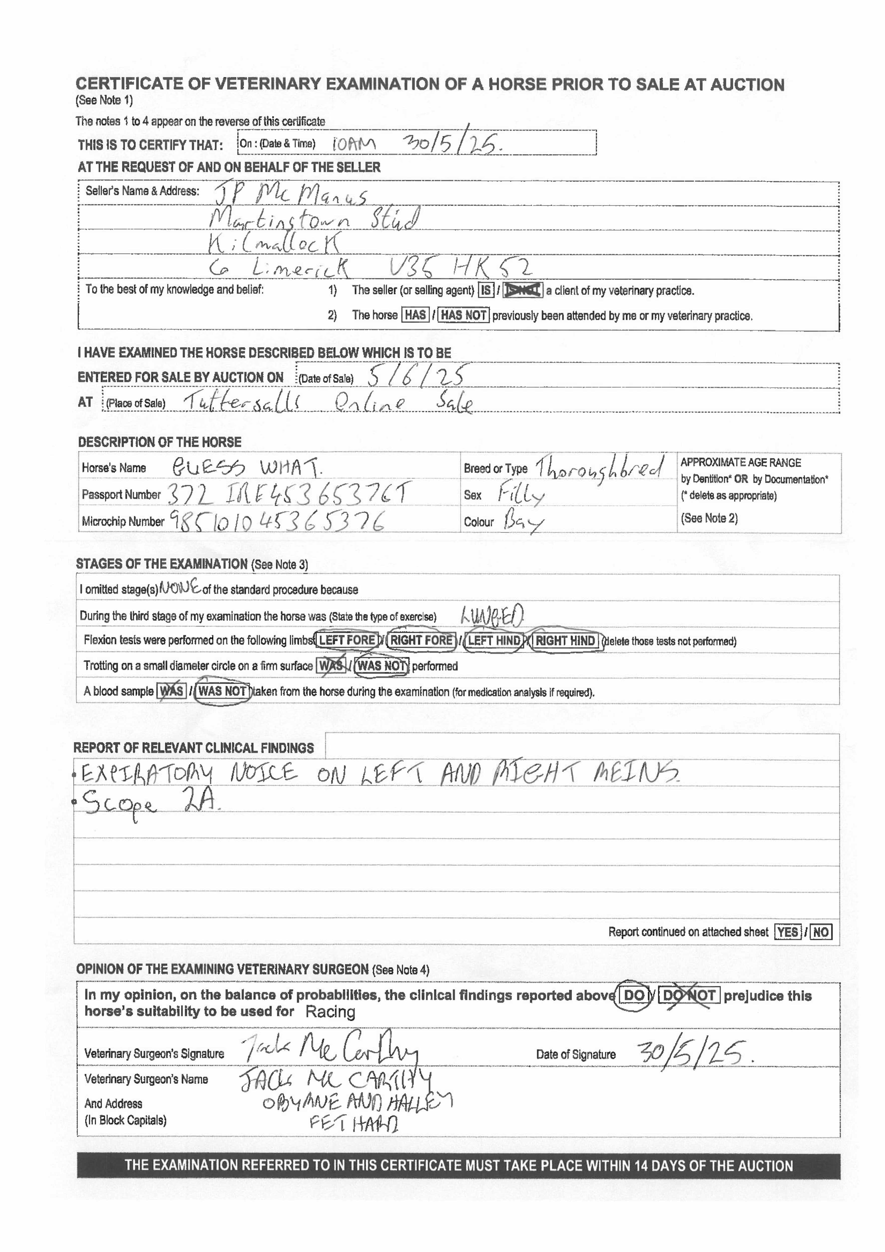 For time sensitive requests please call Tattersalls on +44(0)1638665931