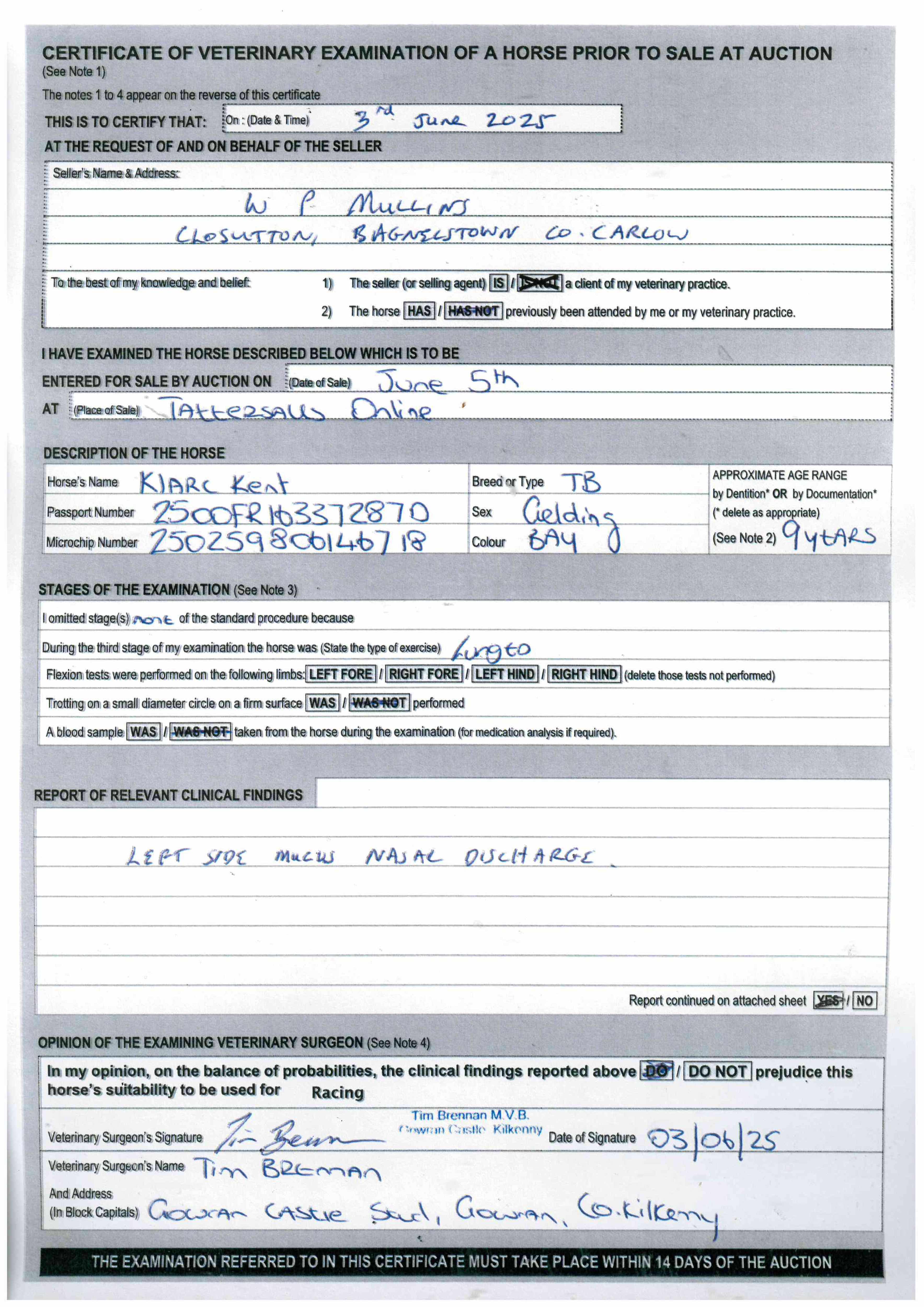 For time sensitive requests please call Tattersalls on +44(0)1638665931