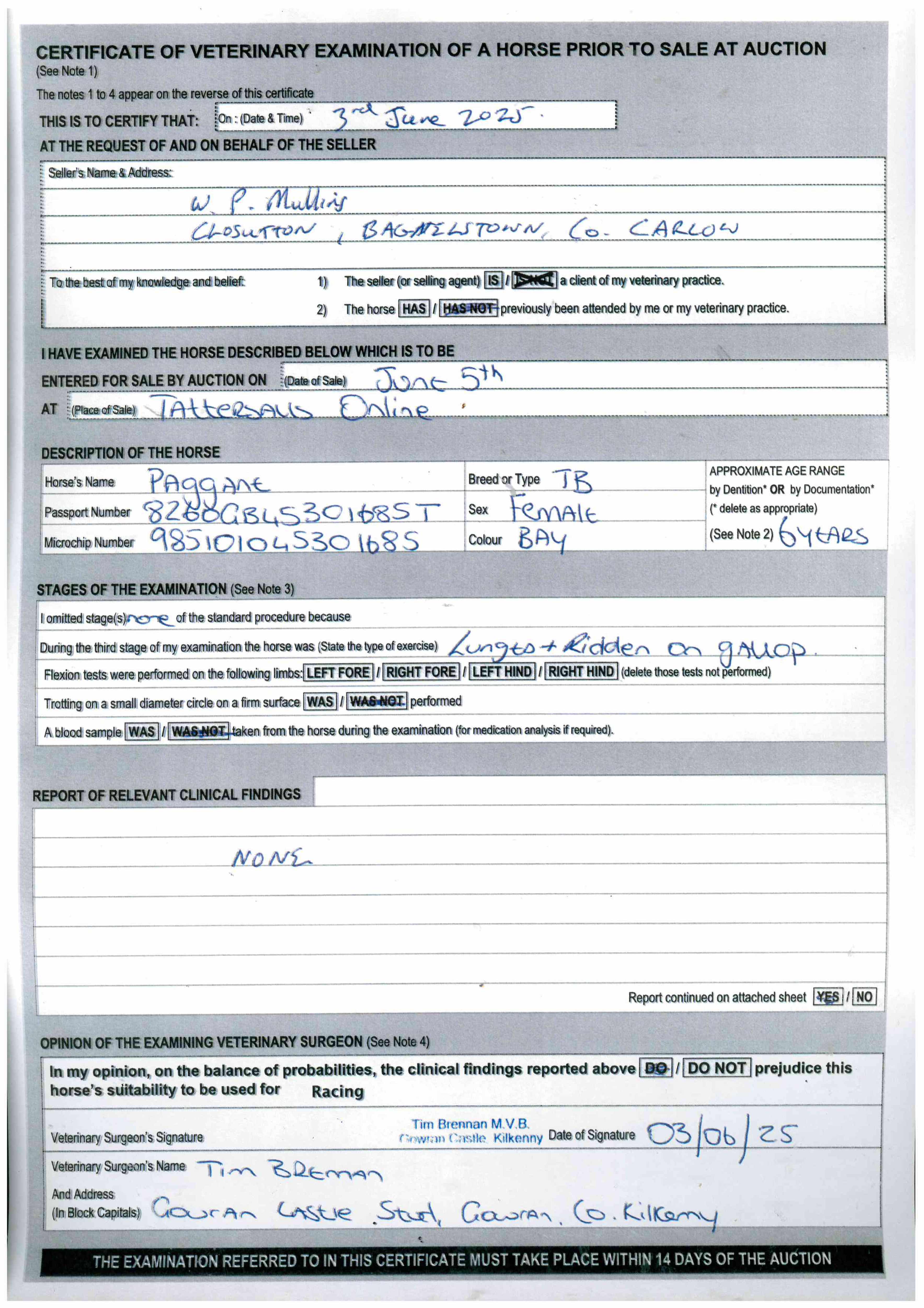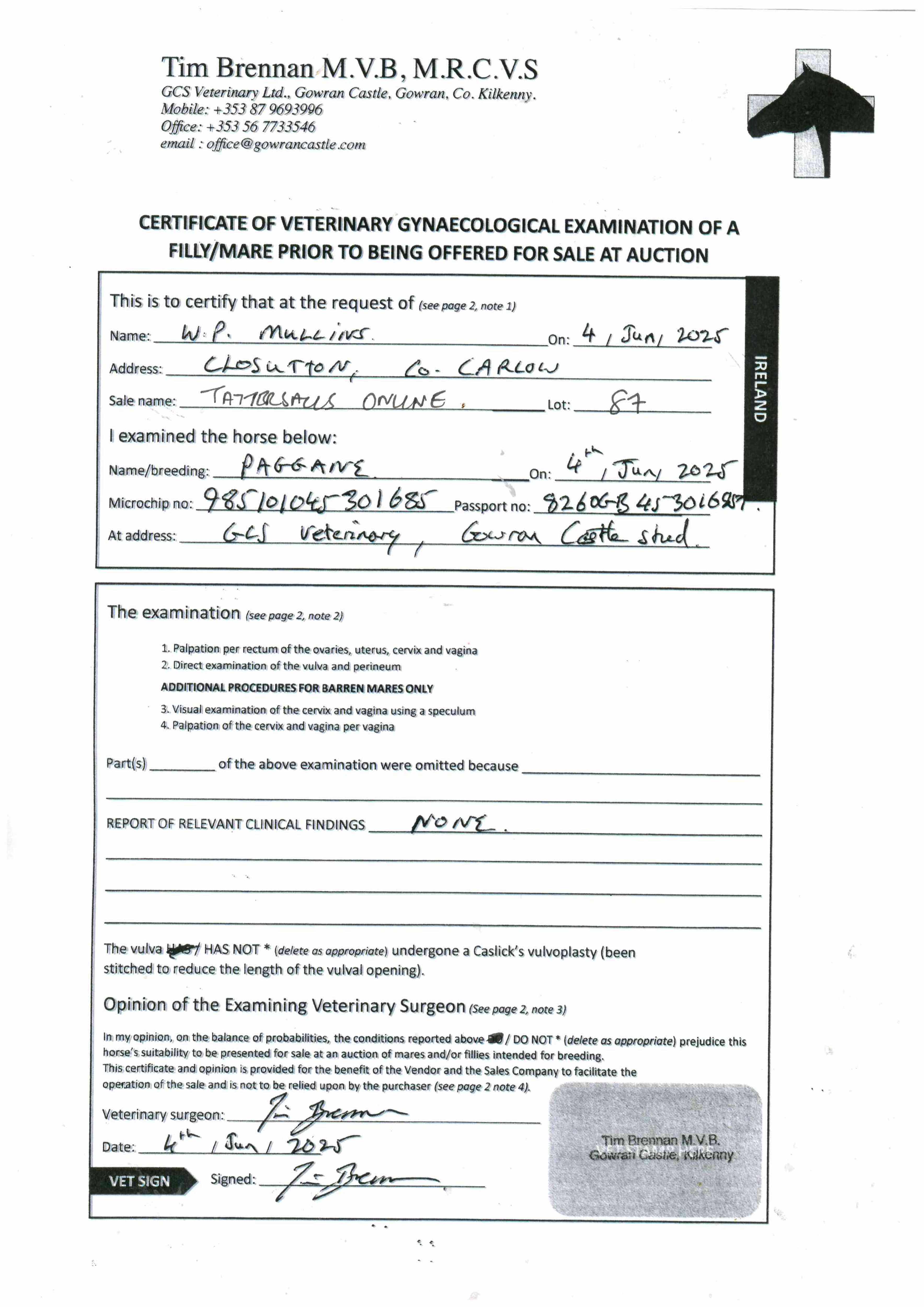 Contact: Willie Mullins  ✆ 0877888713  ✉ office@wpmullins.com