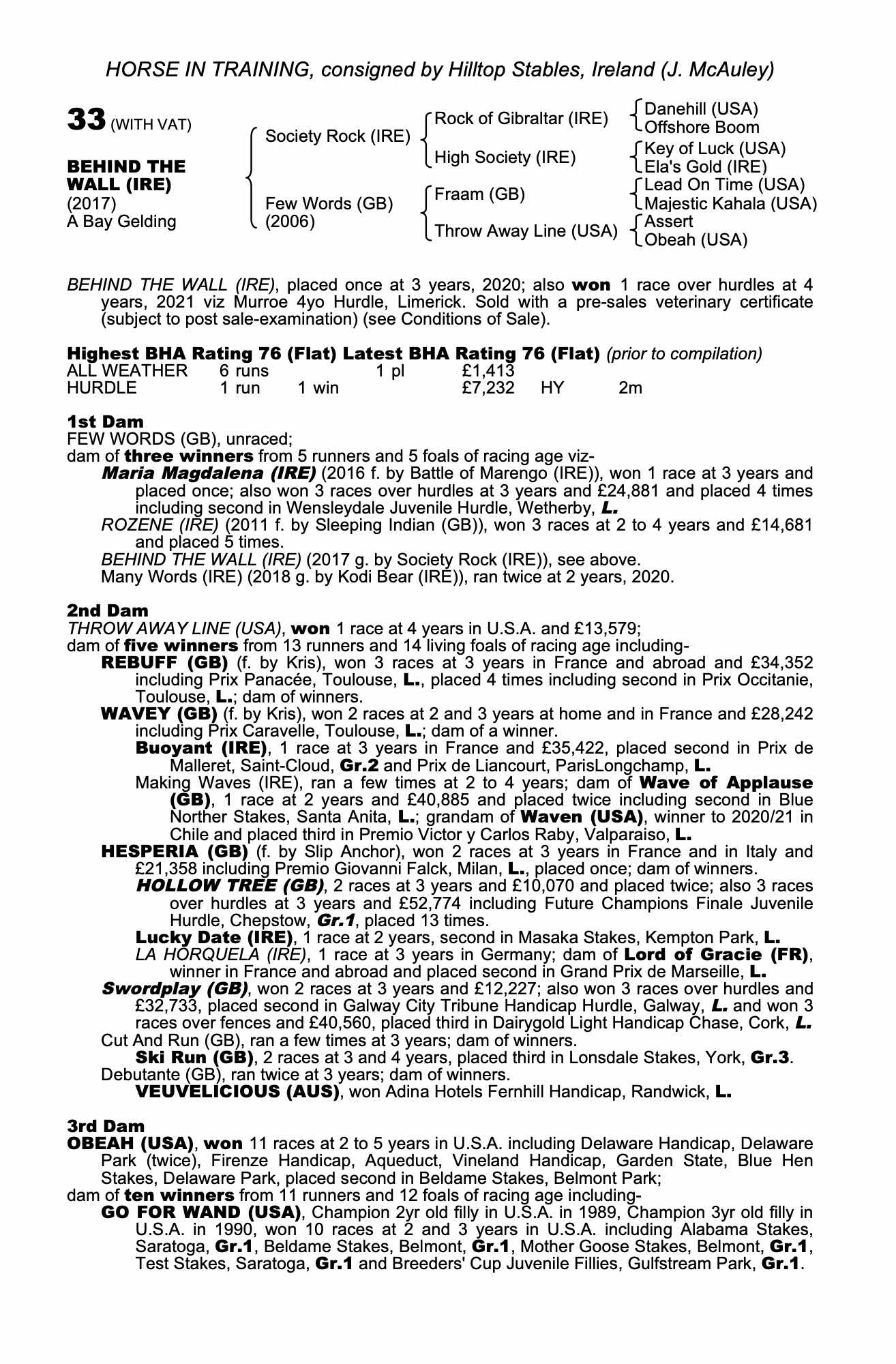 Consignor: Hilltop Stables, Ireland (J. McAuley)