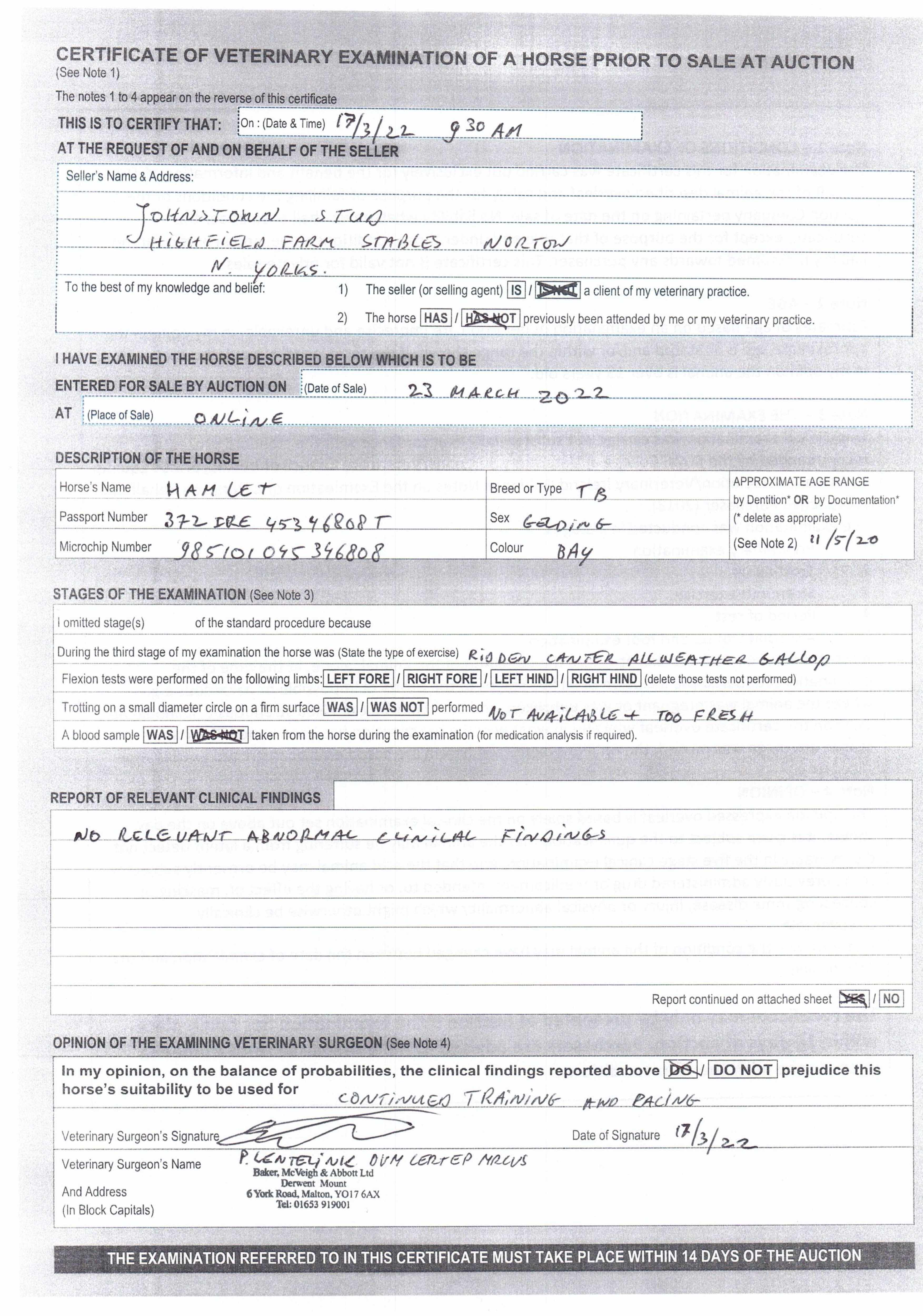 Location: Johnstown Stud, Malton, Yorkshire, YO17 9PJ