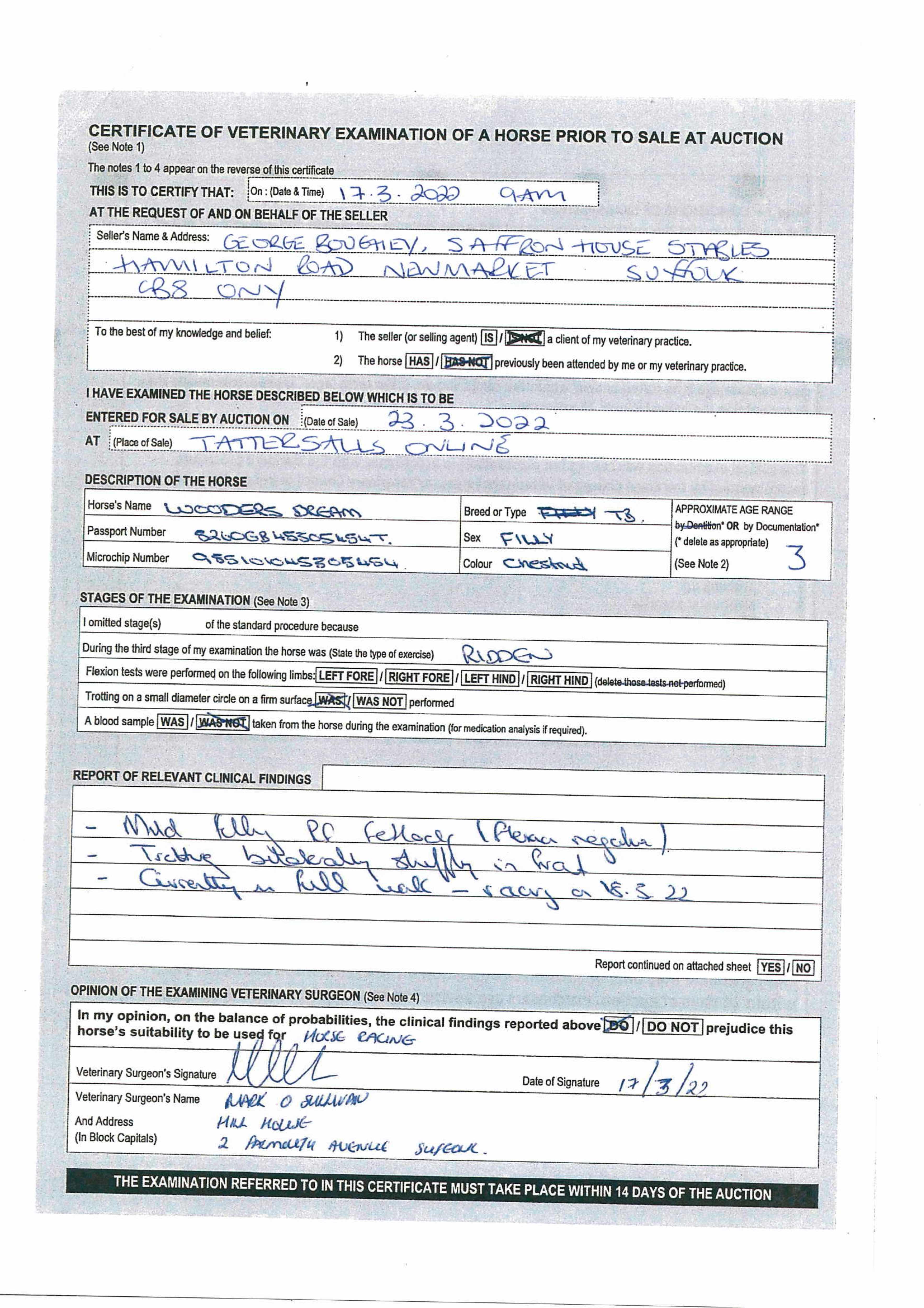 For time sensitive requests please call Tattersalls on +44(0)1638665931
