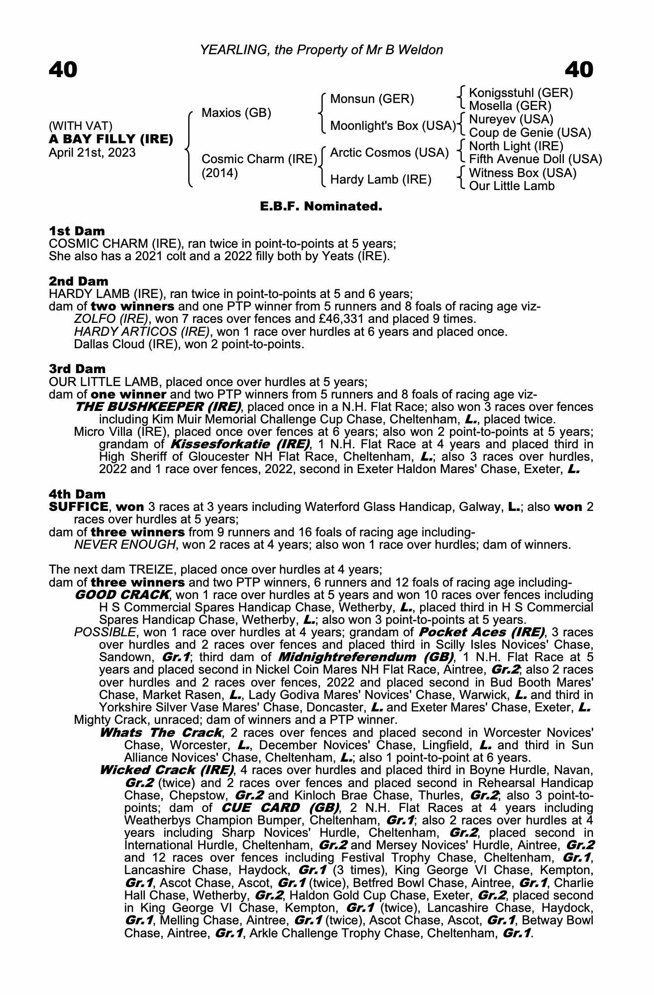 Consignor: Mr B Weldon