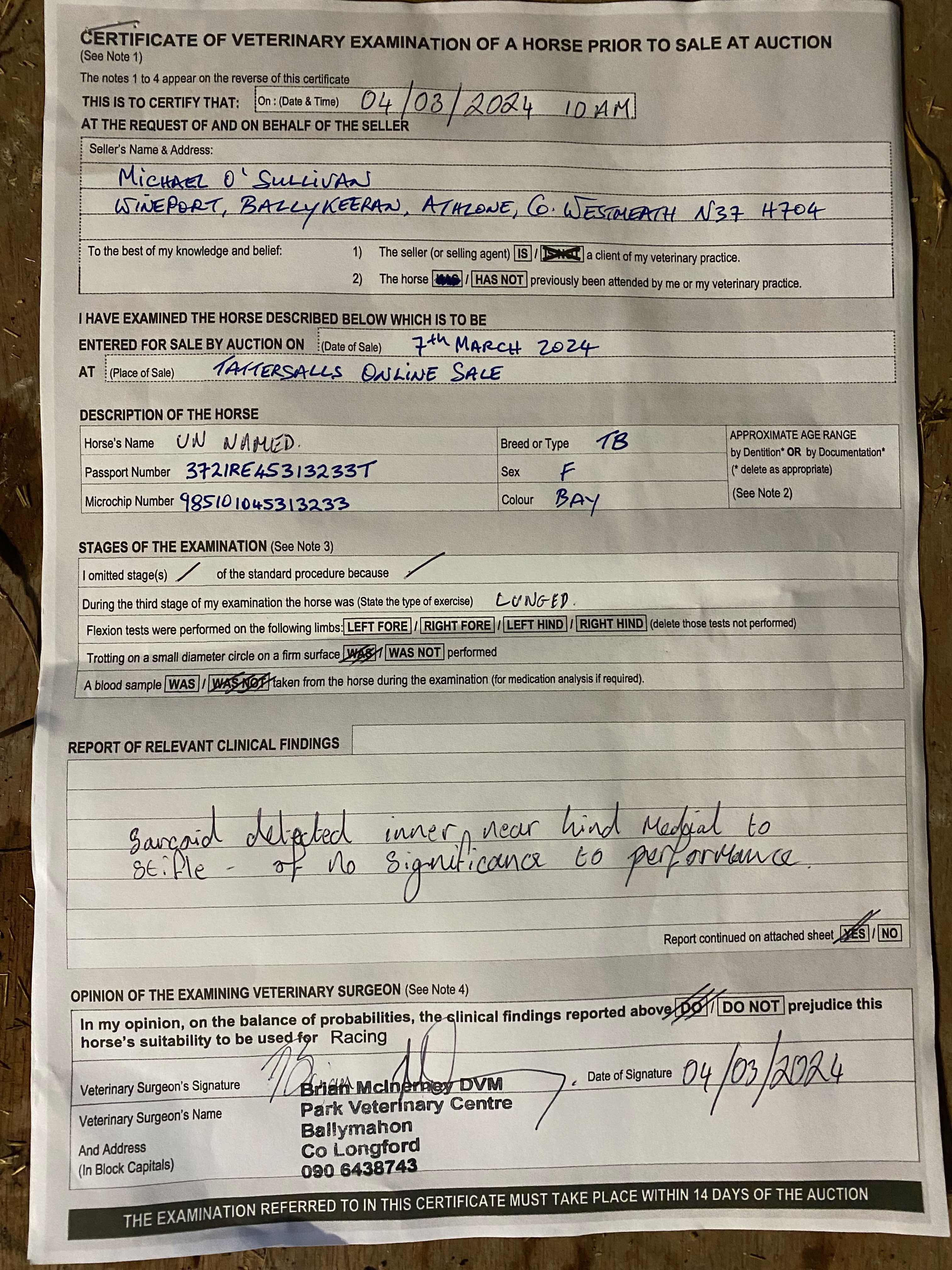 For time sensitive requests please call Tattersalls on +44(0)1638665931