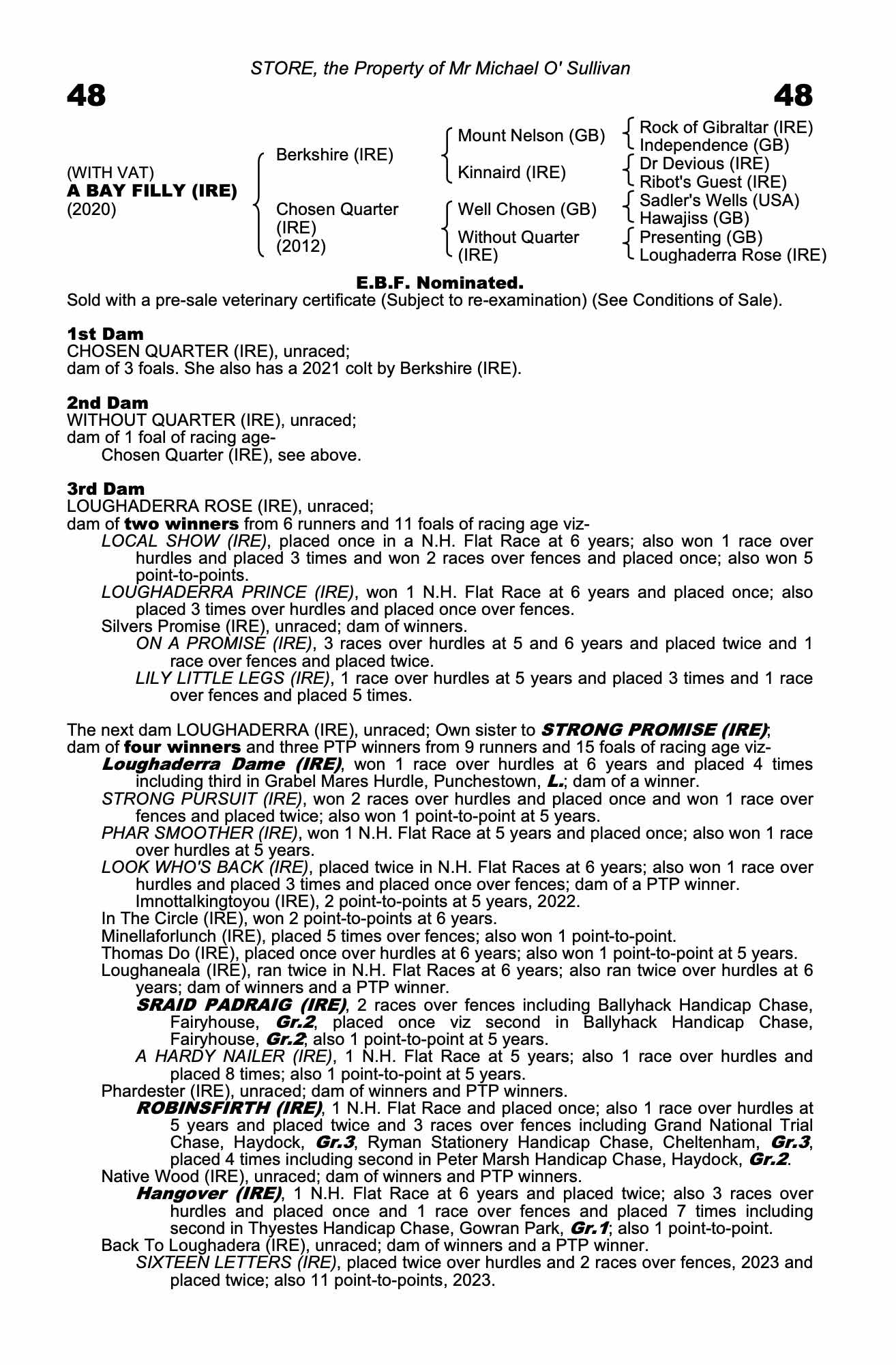 Vendor's Notes: 4 year old Berkshire filly ex Well Chosen dam, untouched, ready to break & race