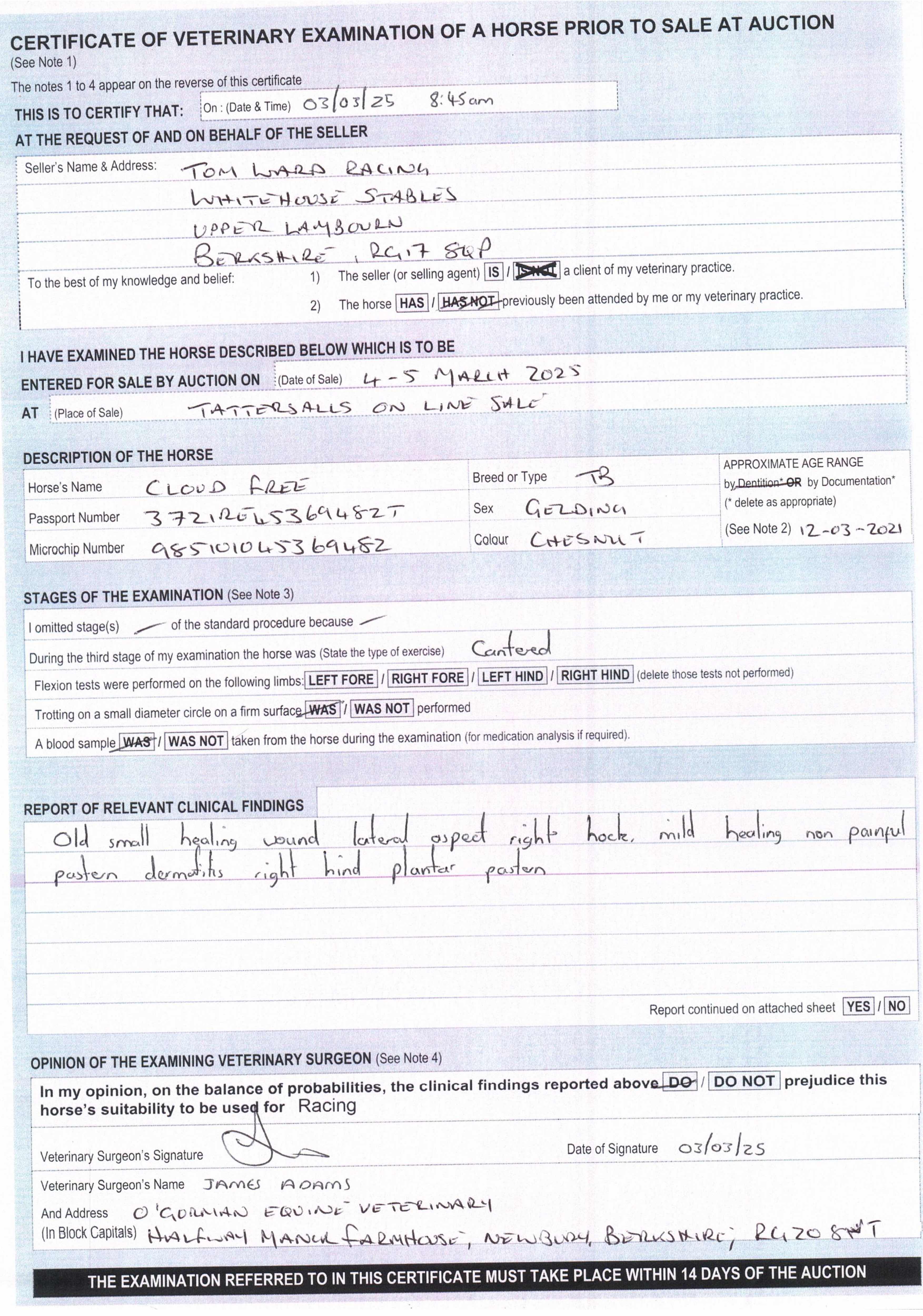 Monday 3 March:  Has run since publication of catalogue. 27/02/25 - finished 9th of 11 in 1m2f (Class 6) Handicap at Chelmsford.