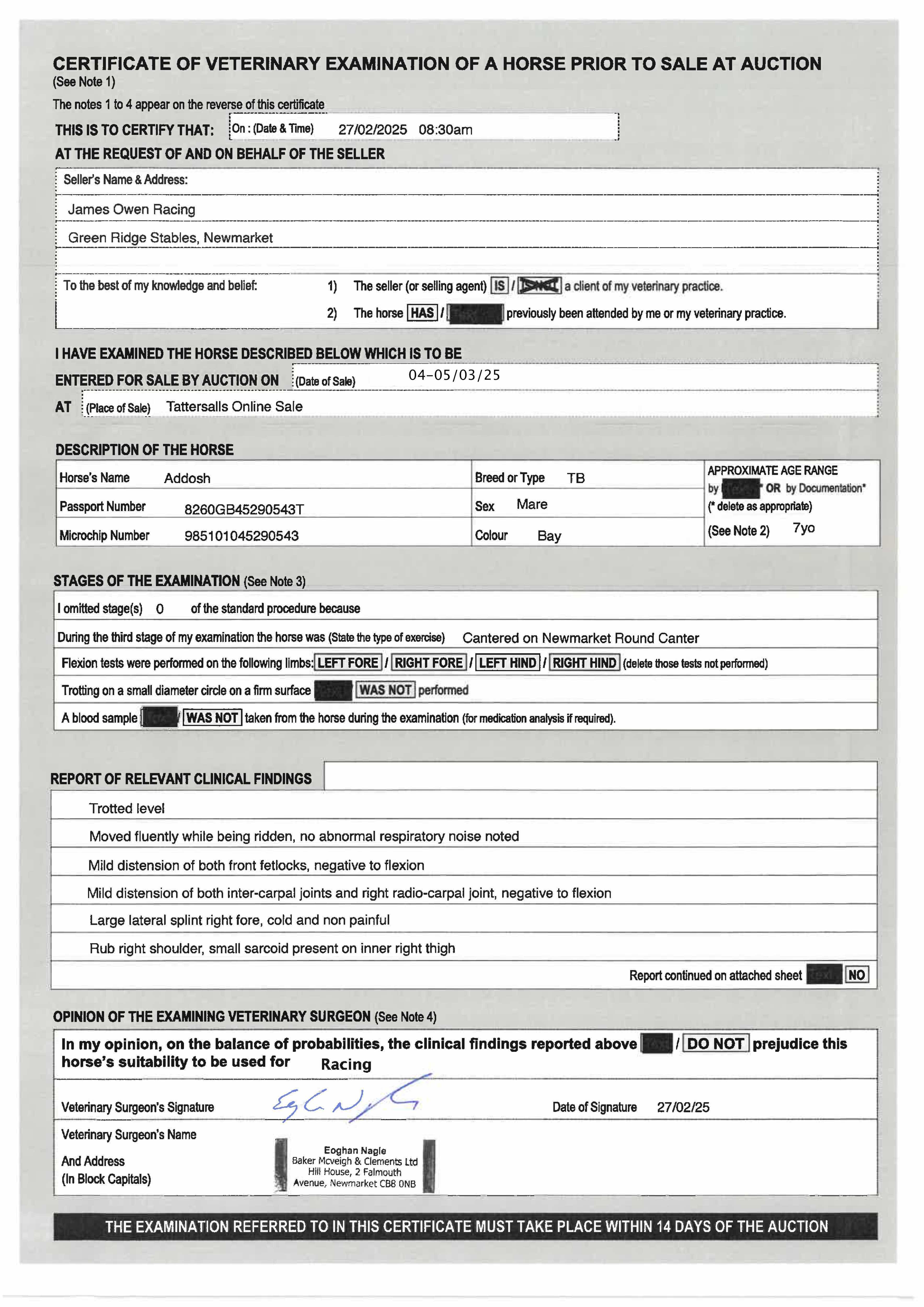 Monday 3 March:  Has run since publication of catalogue. 02/03/25 - finished 8th of 12 in 2m (Class 5) Handicap Hurdle at Huntingdon.