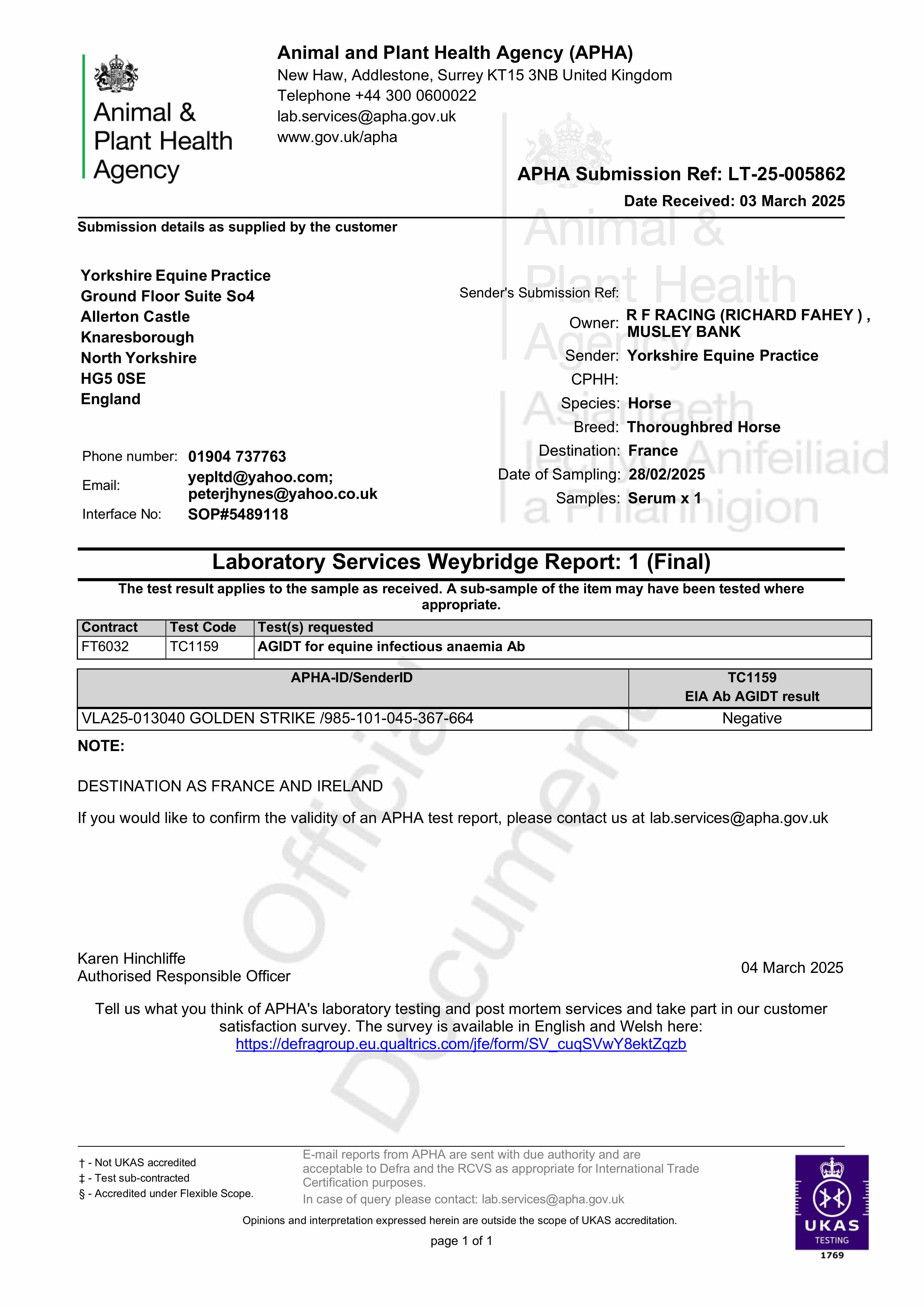 For time sensitive requests please call Tattersalls on +44(0)1638665931