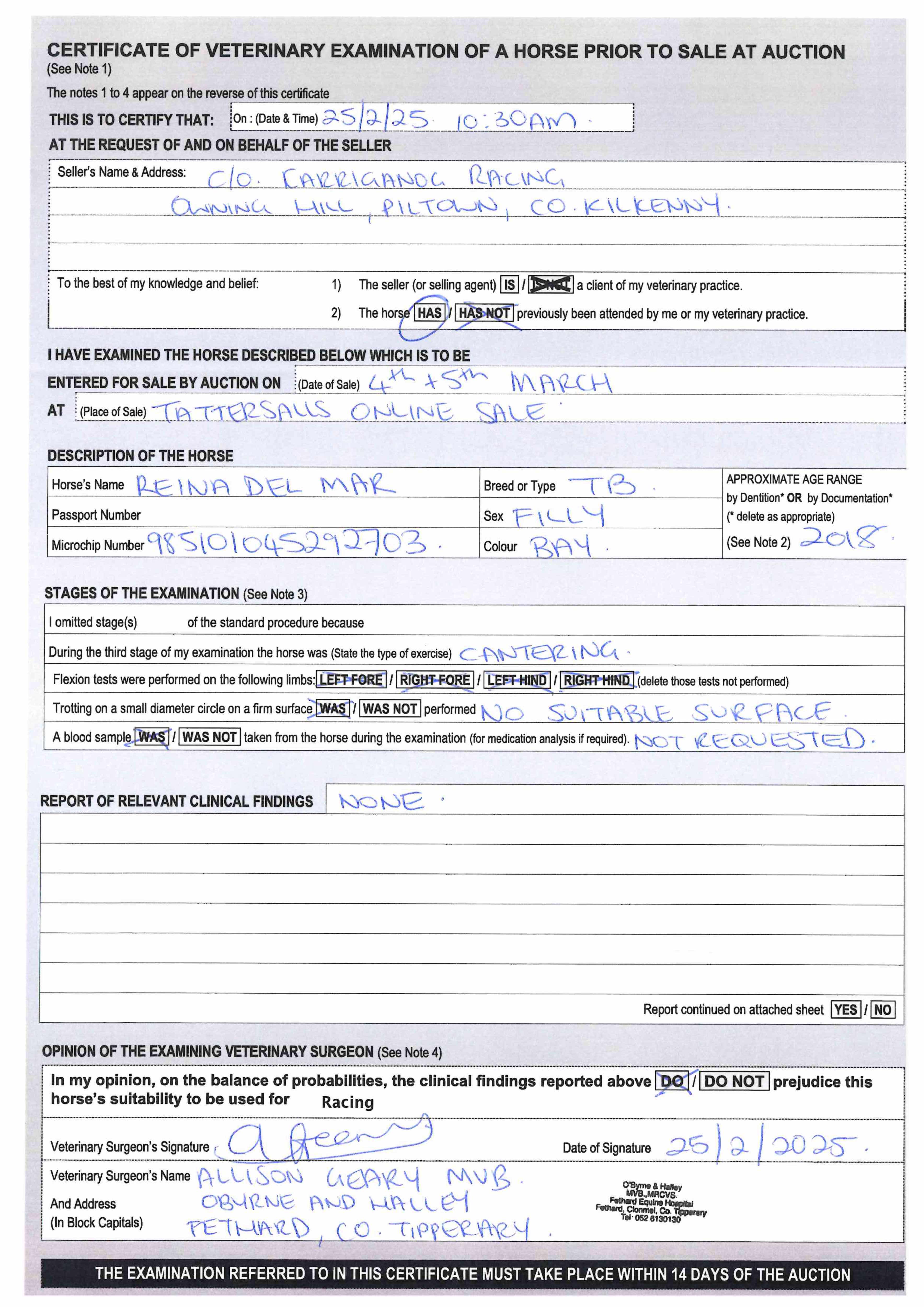 For time sensitive requests please call Tattersalls on +44(0)1638665931