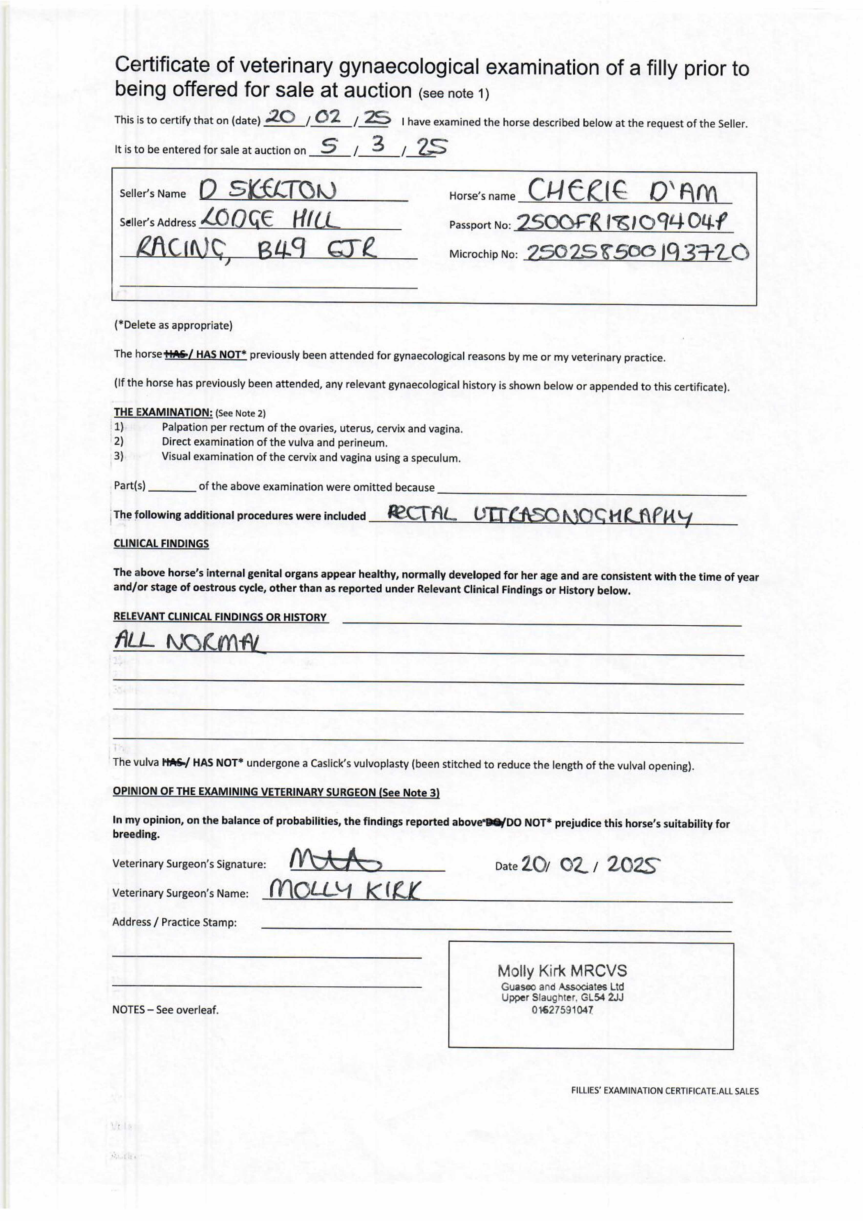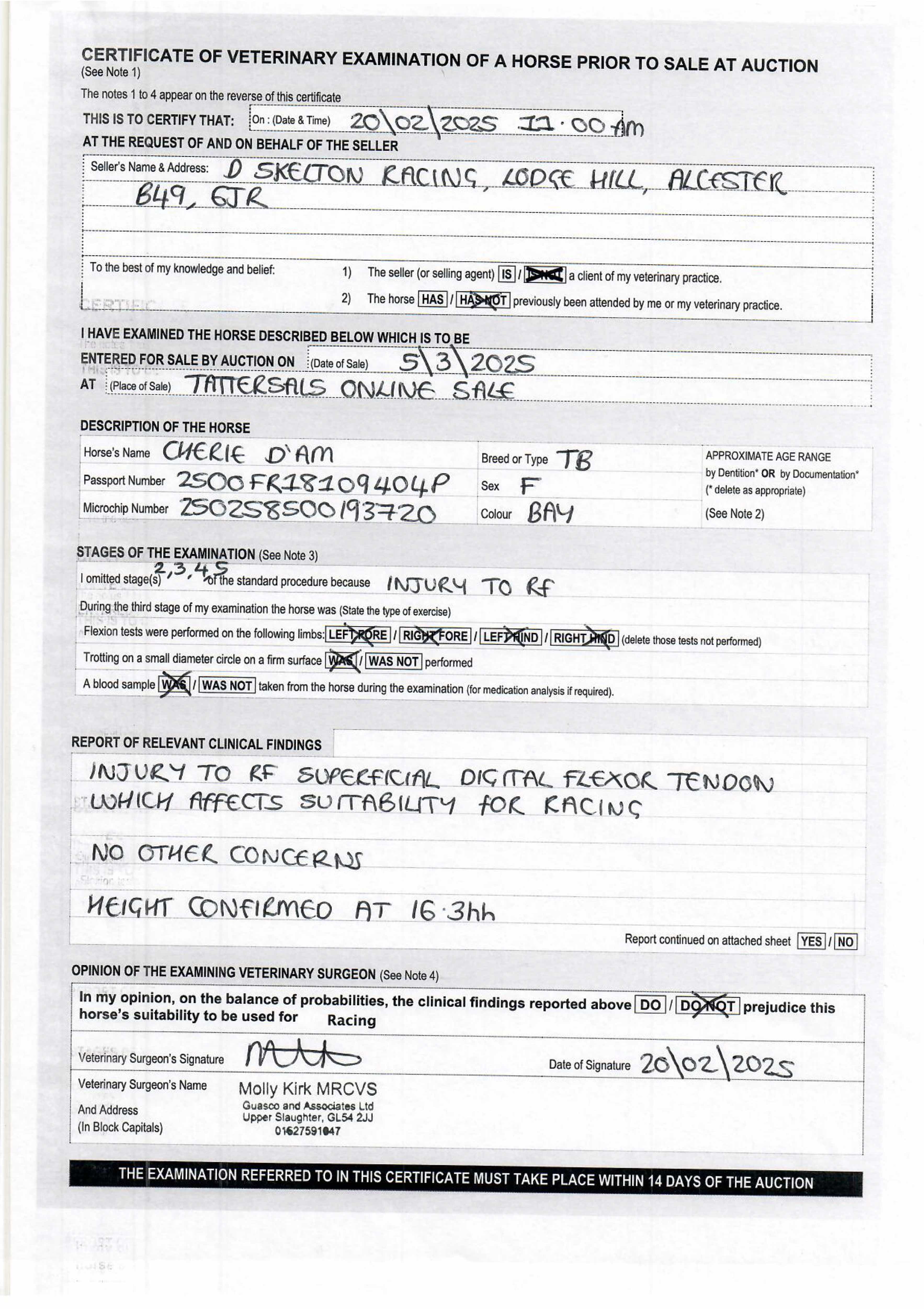 Vendor's Notes: Beautiful Great Pretender black type mare, Grade 1 placed. She has unfortunately sustained a small SDFT injury. She would return to training given time off to recover or would make fantastic broodmare. Only for sale due to owner dispersing of all their stock.