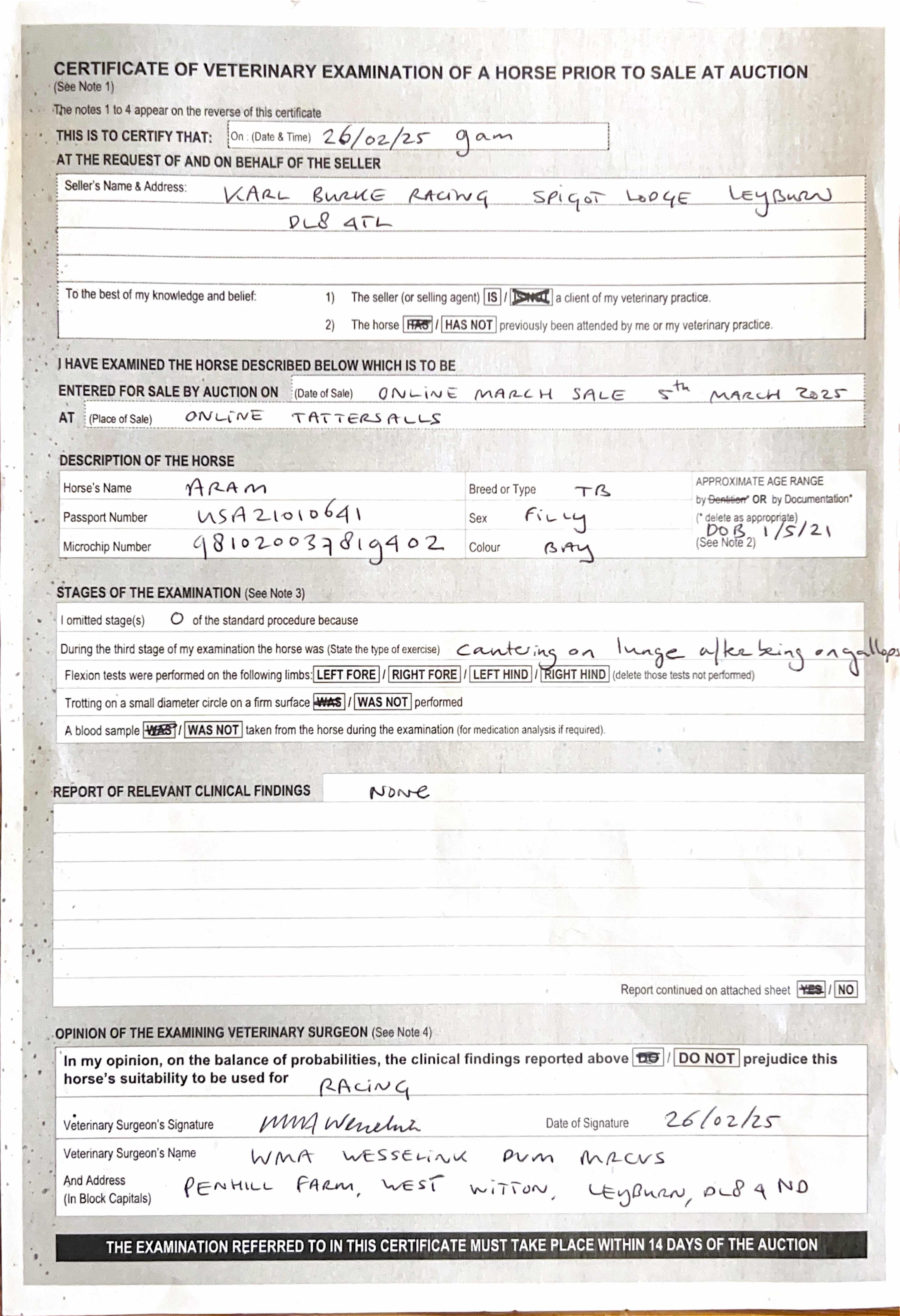 For time sensitive requests please call Tattersalls on +44(0)1638665931