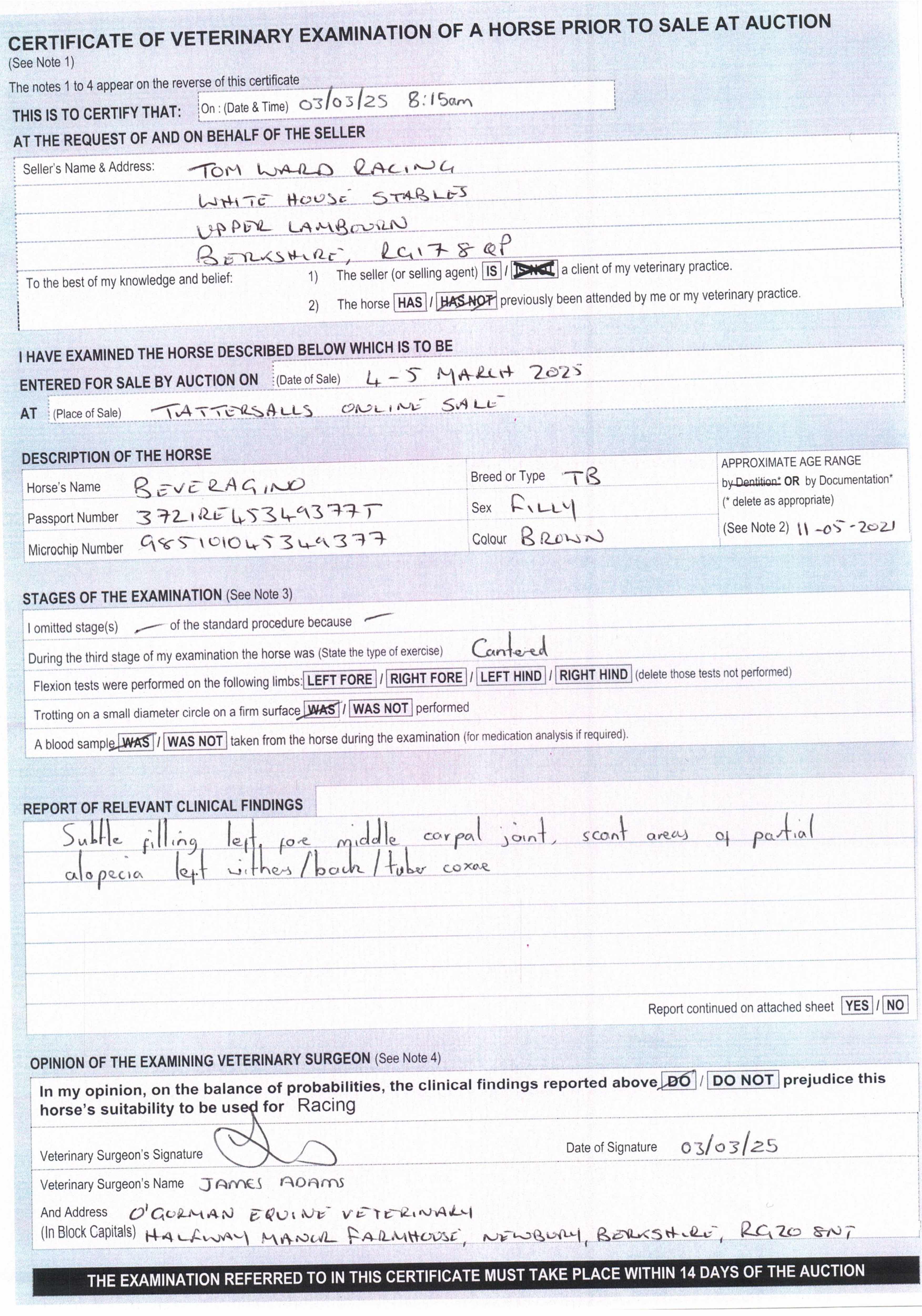 For time sensitive requests please call Tattersalls on +44(0)1638665931
