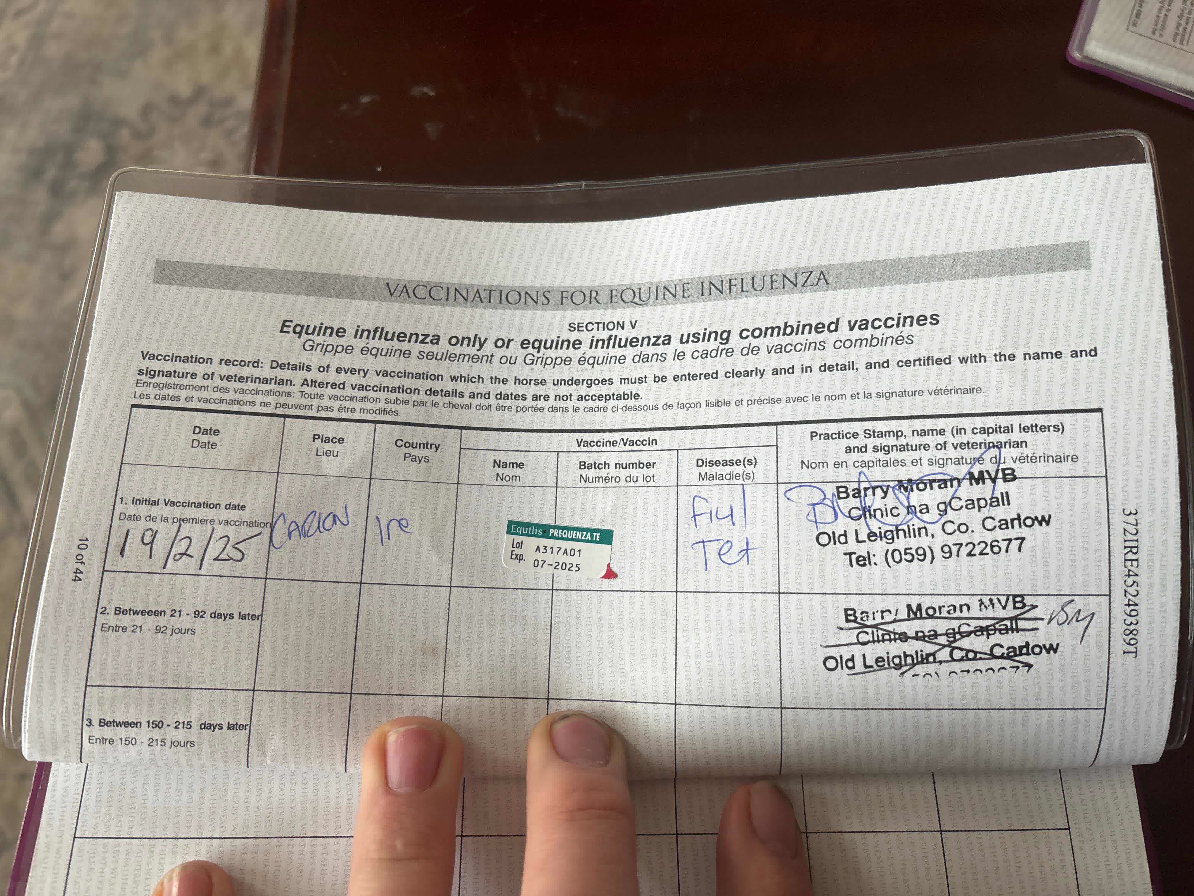 Vices/Declarations: The influenza vaccinations are not compliant with the current BHA requirements and further vaccinations will be required.