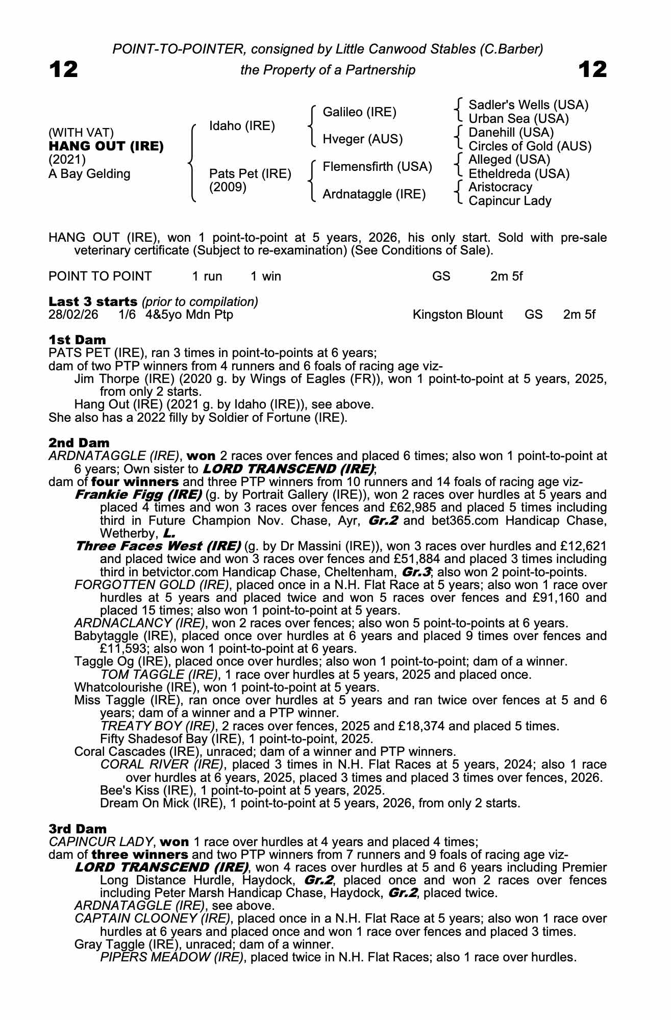 Vendor's Notes: Hang Out shares his sire with the top-class Idaho Sun and the 5yo gelding made a bright start to his career when winning on debut at Kimblewick for Chris Barber beating more experienced rivals in the process.