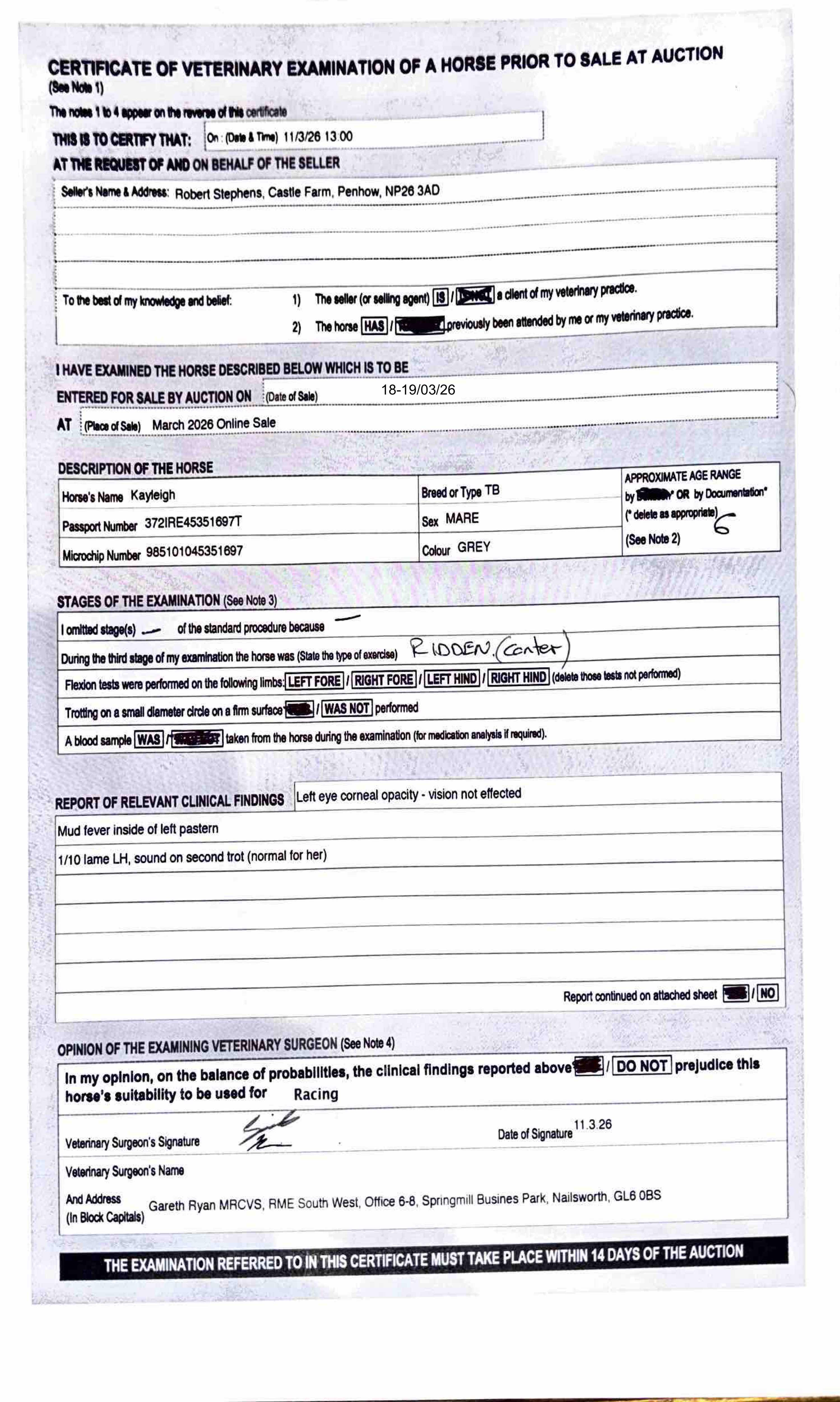 For time sensitive requests please call Tattersalls on +44(0)1638665931