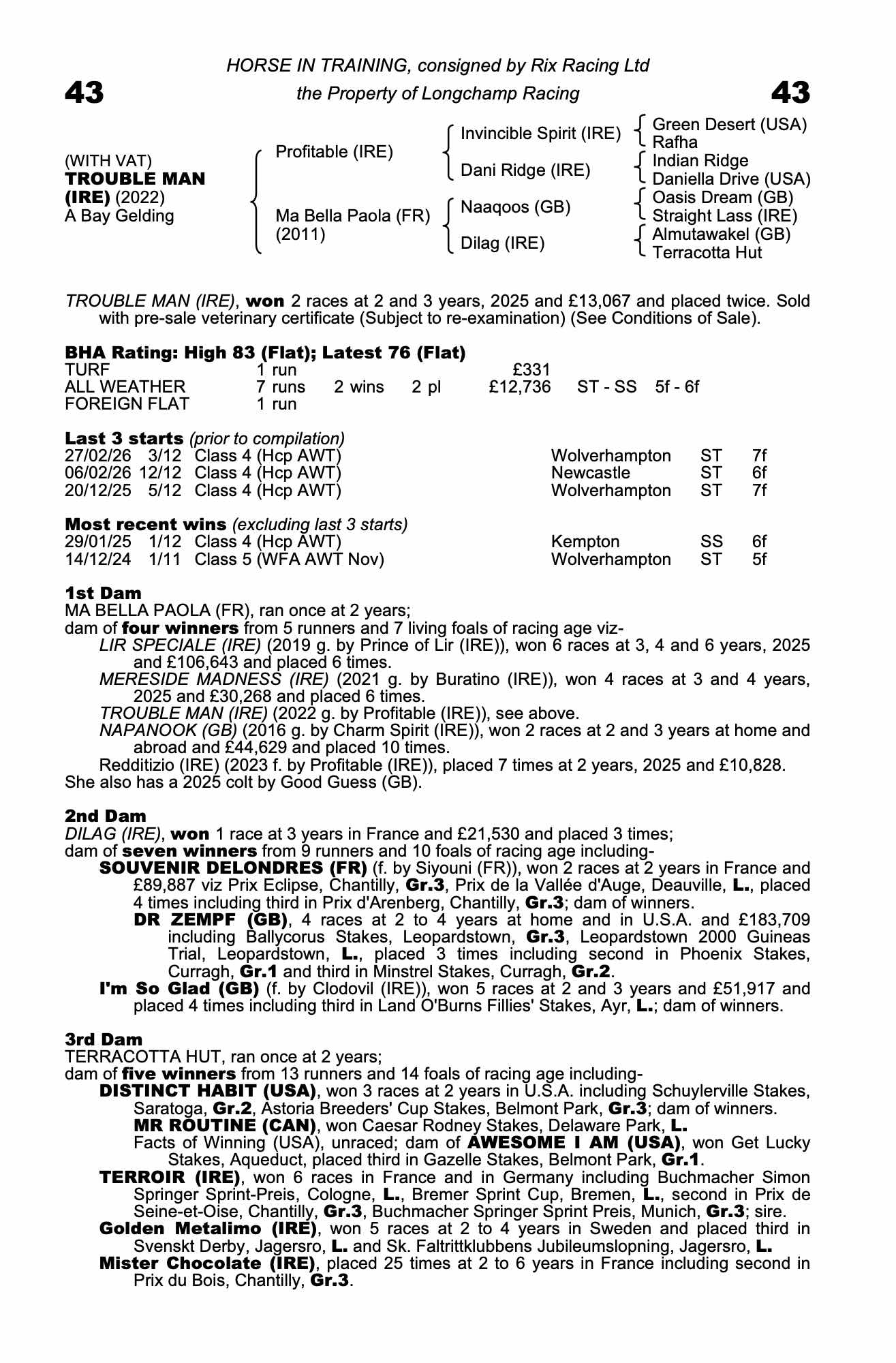 Vendor's Notes: Trouble Man is a likable 4yo gelding, well mannered, will win races off current mark!